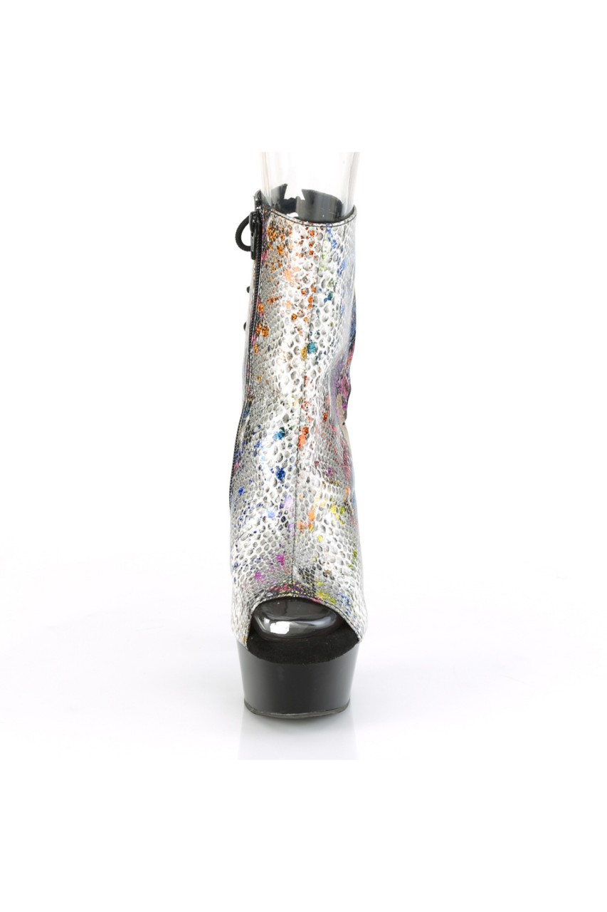 6″” (152mm) Heel, 1 3/4″” (45mm) Platform Open Toe/Heel Lace-Up Back Ankle Boot w/Hidden Zip Pocket, Inner Side Zip Closure