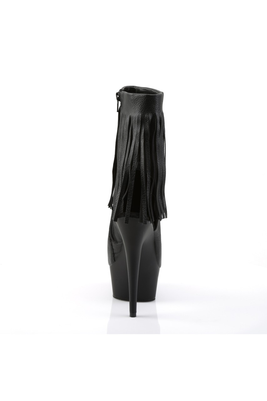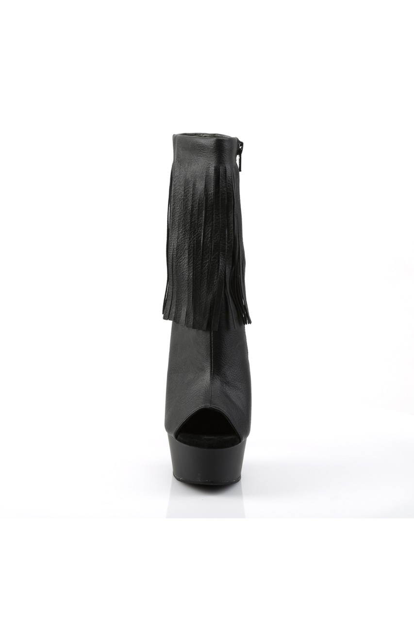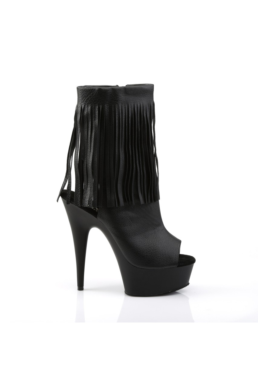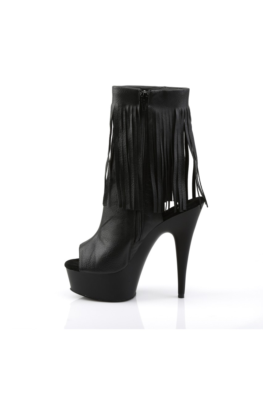 6″” (15.2cm) Stiletto Heel, 1 3/4″” (4.5cm) Platform Open Toe/Heel Fringe Ankle Boot, Inner Side Zip Closure