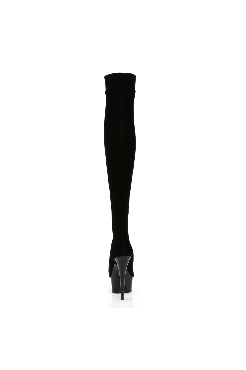 6″” (15.2cm) Stiletto Heel, 1 3/4″” (4.5cm) Platform Stretch Thigh High Boot, No Zip Closure