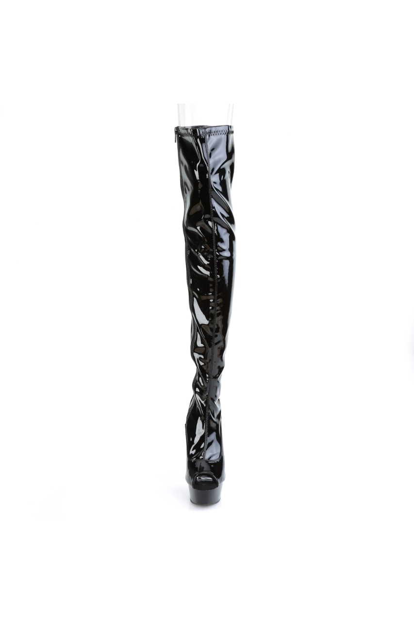 6″” (152mm) Heel, 1 3/4″” (45mm) Platform Peep Toe Stretch Thigh High Boot, Inner Side Zip Closure