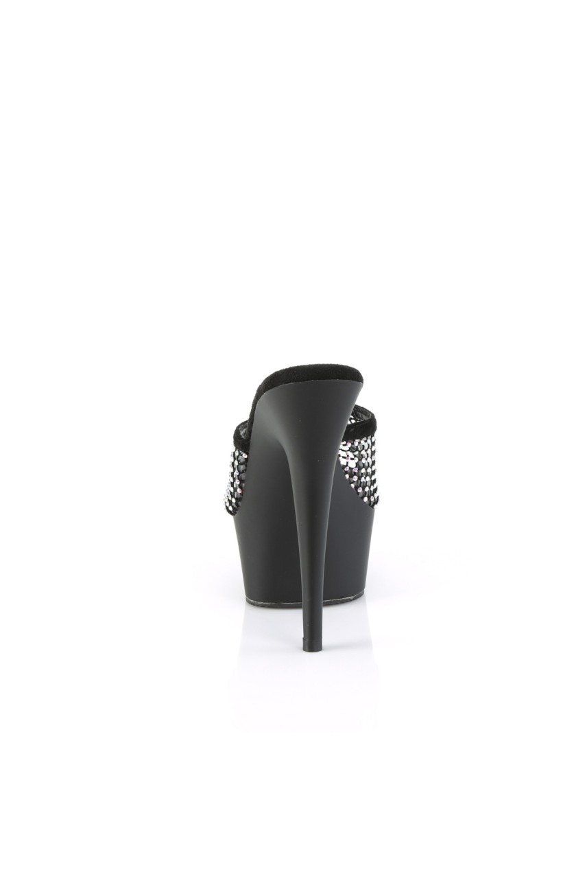 6″” (152mm) Heel, 1 3/4″” (45mm) Platform Peep Toe Slide Featuring Clear Upper w/AB Rhinestone Mesh Fabric Overlay