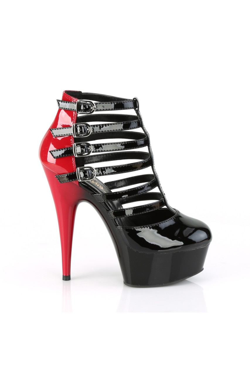 6″” (152mm) Heel, 1 3/4″” (45mm) Platform Two Tone Buckled Strappy Cage Bootie