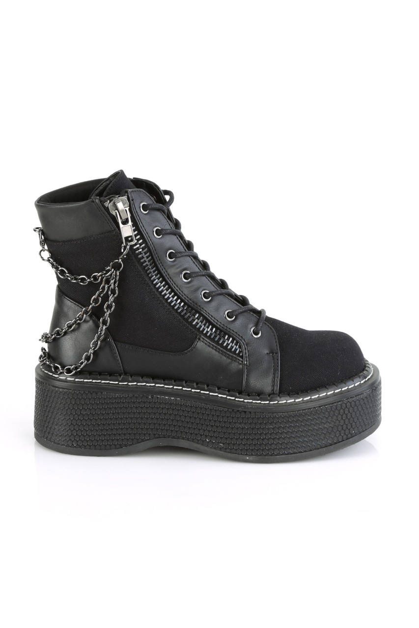 2″” (51mm) Platform Lace-Up Front Bootie with Padded Ankle Collar, Clip-On Back Chain Detail and Outer Metal Zip Closure