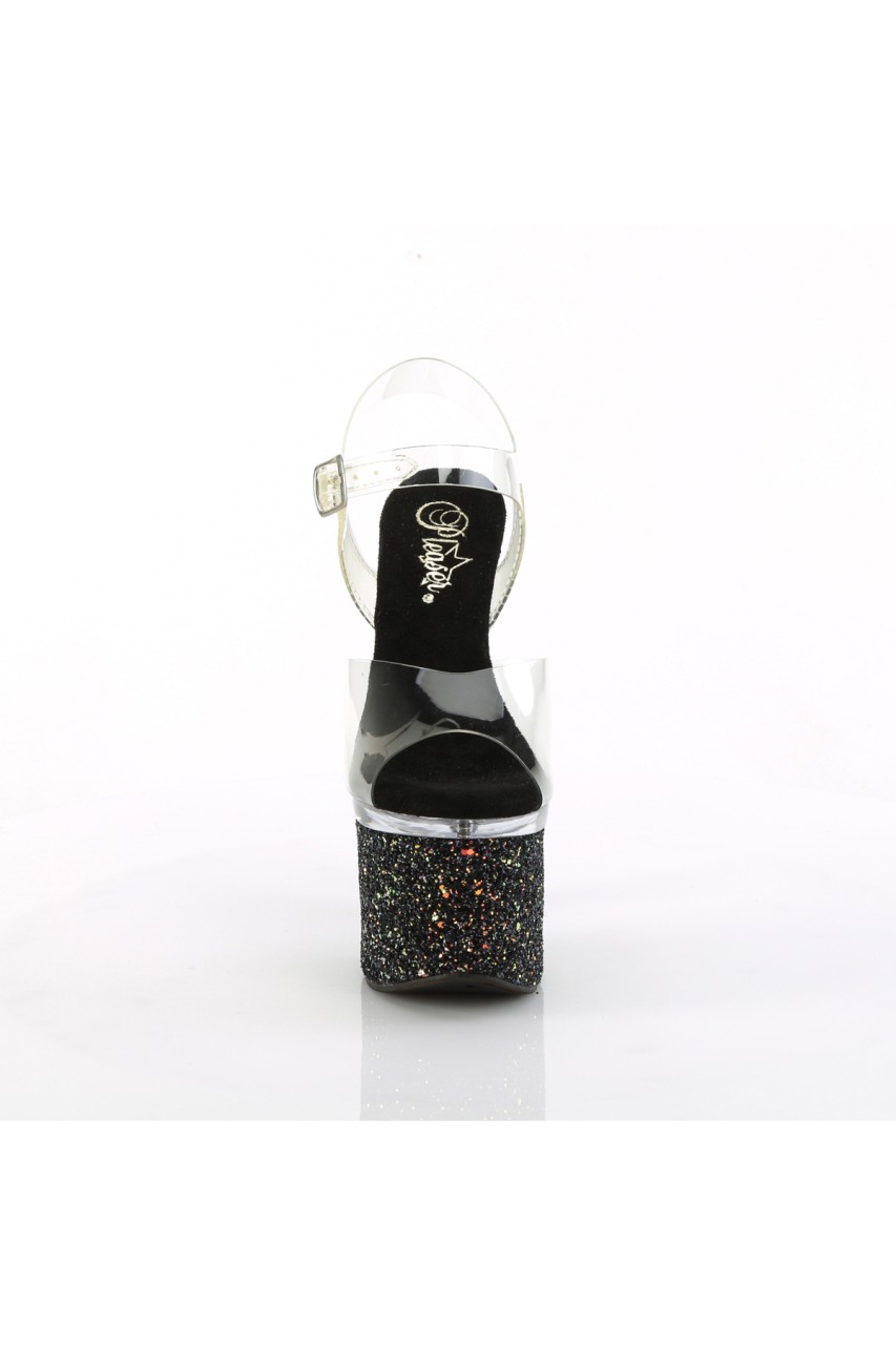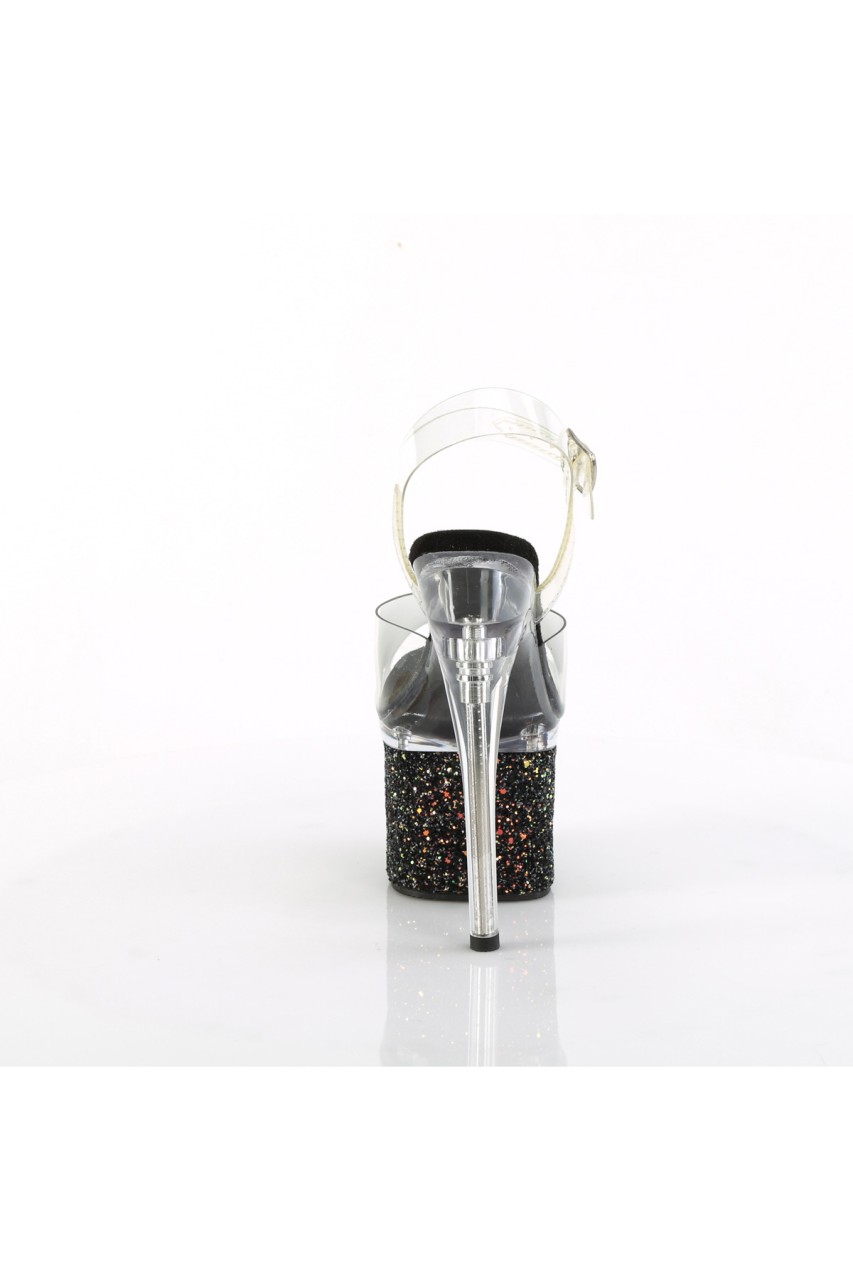 7″” (178mm) Heel, 3″” (76mm) Platform Ankle Strap Sandal Featuring Iridescent Glitters Wrapped Lower Platform