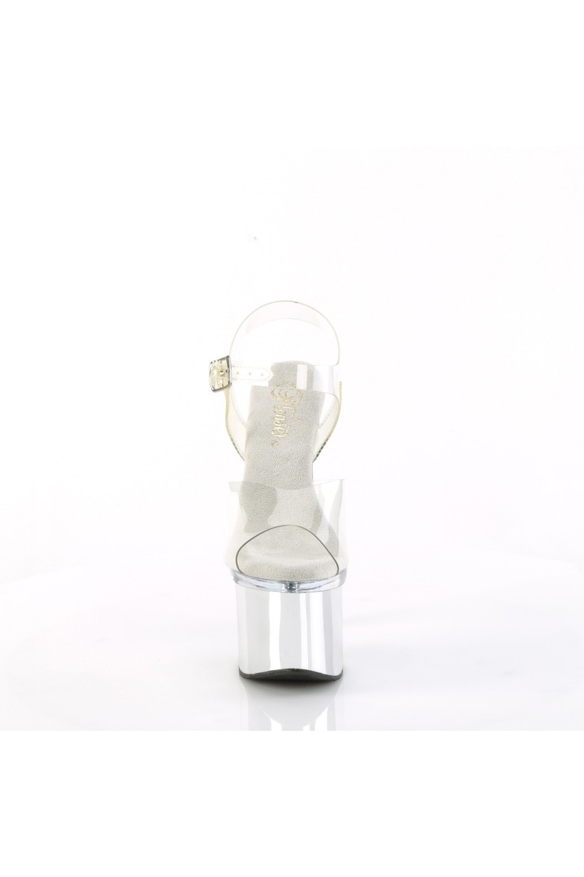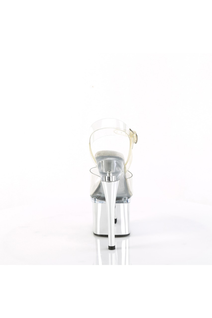 7″” (178mm) Heel, 3″” (76mm) Platform Ankle Strap Sandal w/Chrome Plated Lower Platform