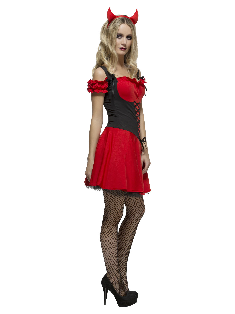 Fever Wicked Devil Costume, Red, with Dress, Attached Underskirt & Horns