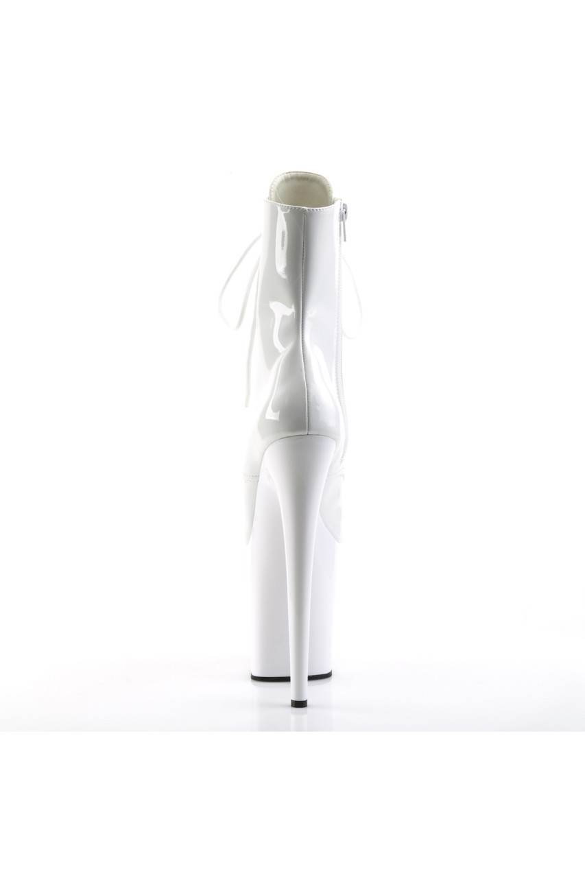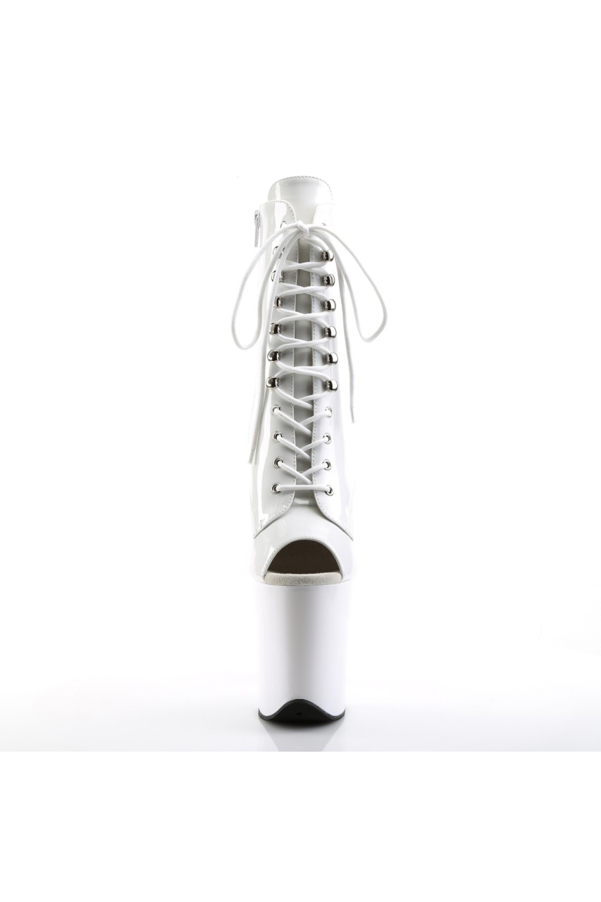 8″” (200mm) Stiletto Heel, 4″” (100mm) Platform Peep Toe Front Lace-Up Ankle Boot, Inner Side Zip Closure