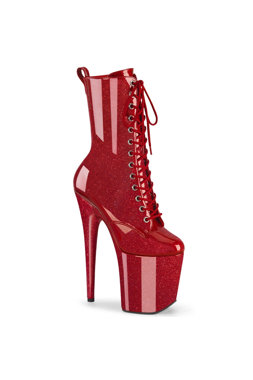 8″” (200mm) Heel, 4″” (100mm) Platform Lace-Up Front Ankle Boot Featuring Back Pull Loop, Inner Side Zip Closure