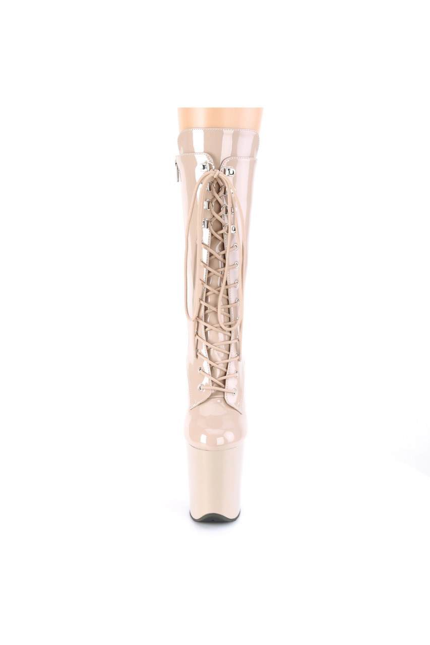 8″” (200mm) Heel, 4″” (100mm) Platform Lace-Up Front Mid Calf Boot, Inner Side Zip Closure