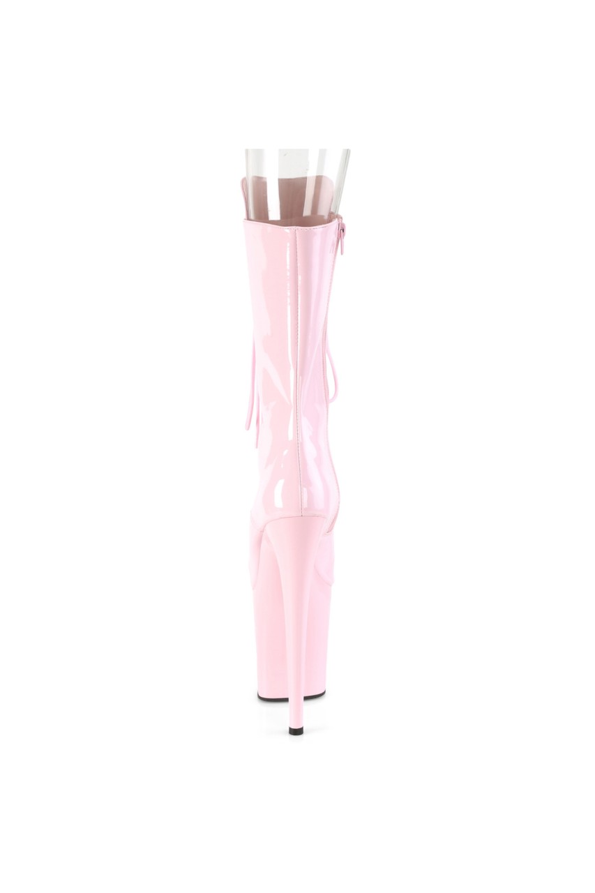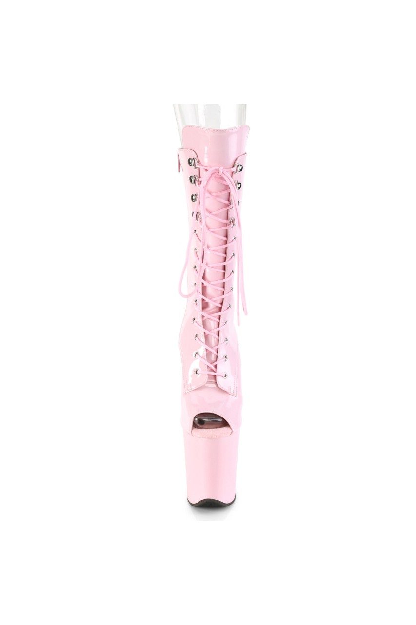 8″” (200mm) Heel, 4″” (100mm) Platform Peep Toe Lace-Up Front Mid Calf Boot, Inner Side Zip Closure