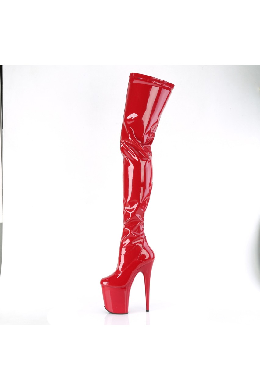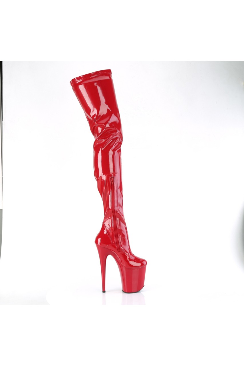 8″” (200mm) Heel, 4″” (100mm) Platform Stretch Crotch Boot, 1/2 Length Inner Side Zip Closure