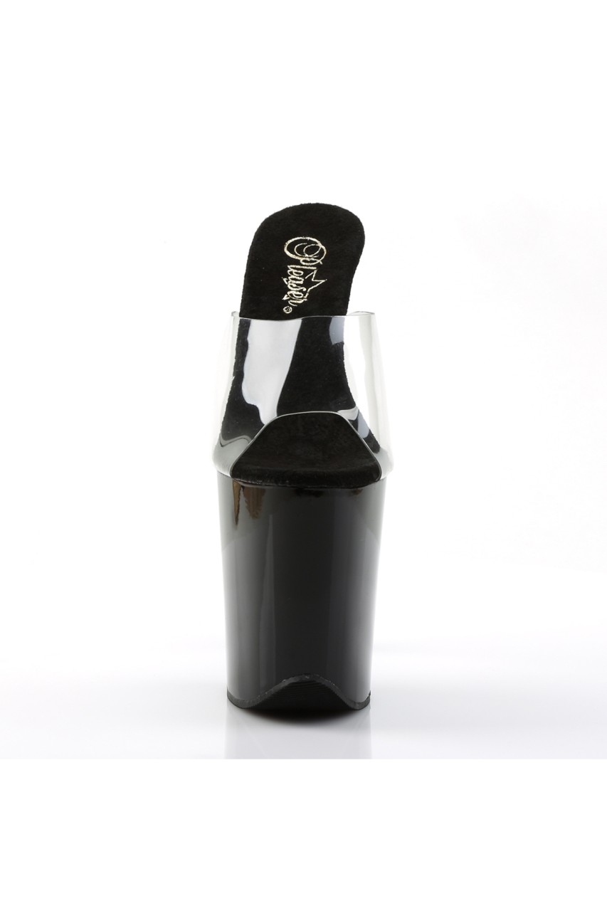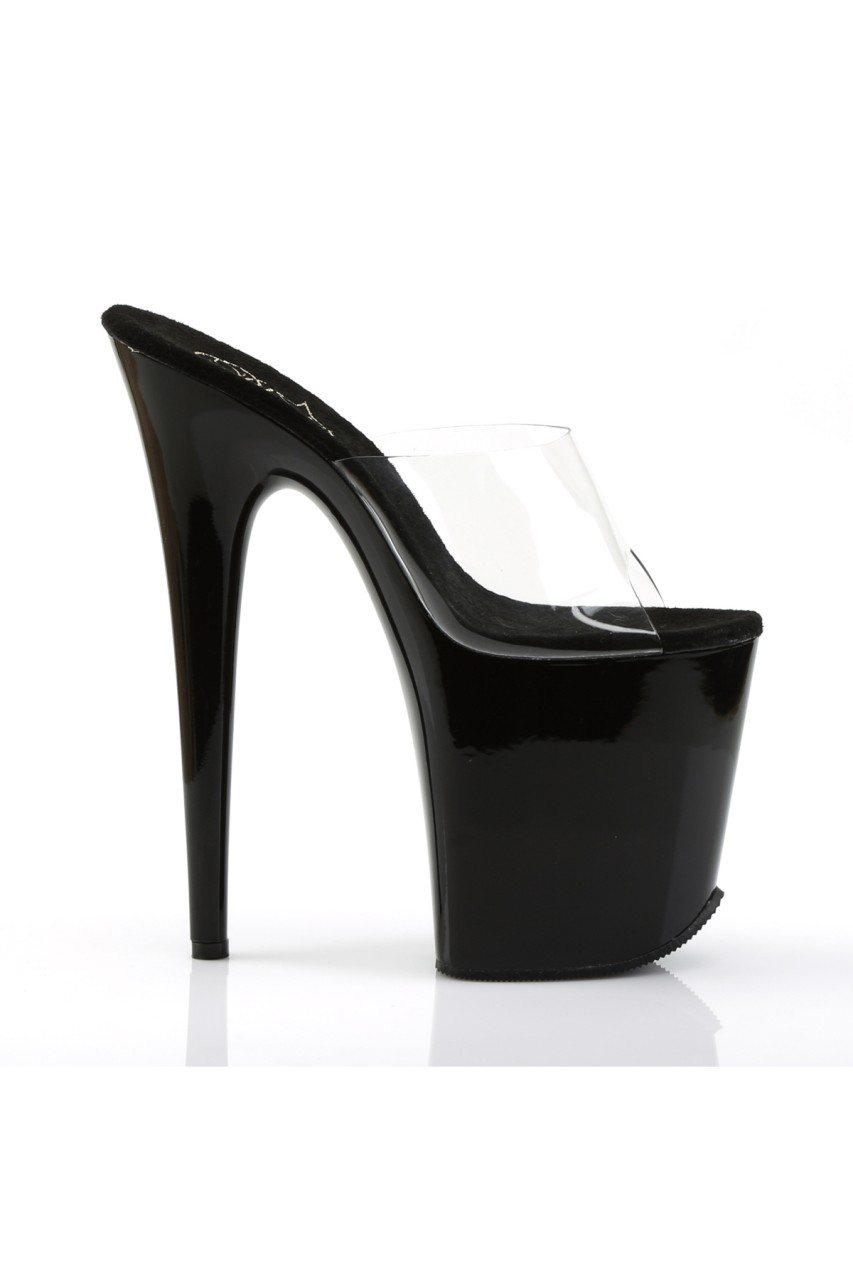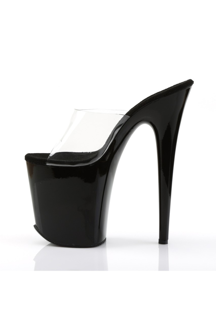 8″” (20.3cm) Stiletto Heel, 4″” (10.2cm) Platform Peep Toe Slide