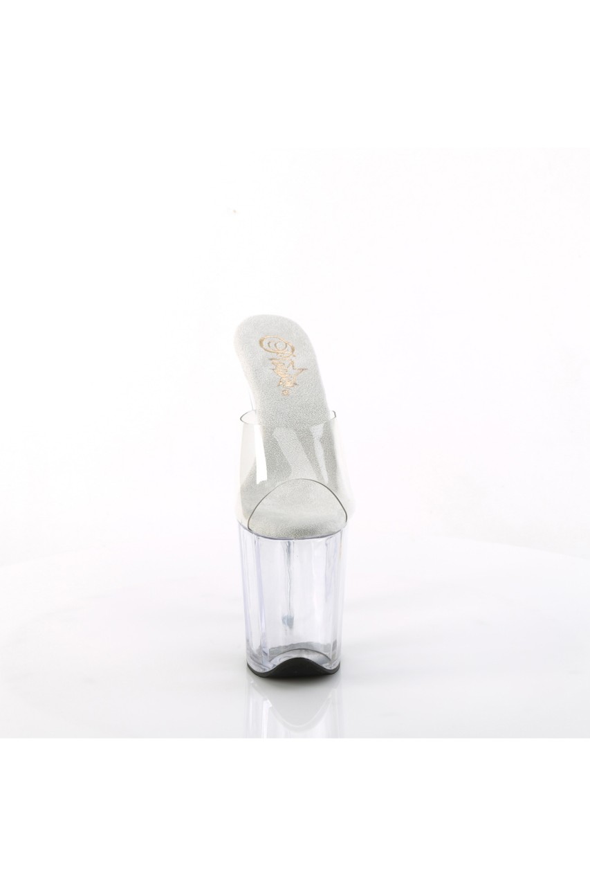 8″” (20.3cm) Stiletto Heel, 4″” (10.2cm) Platform Peep Toe Slide