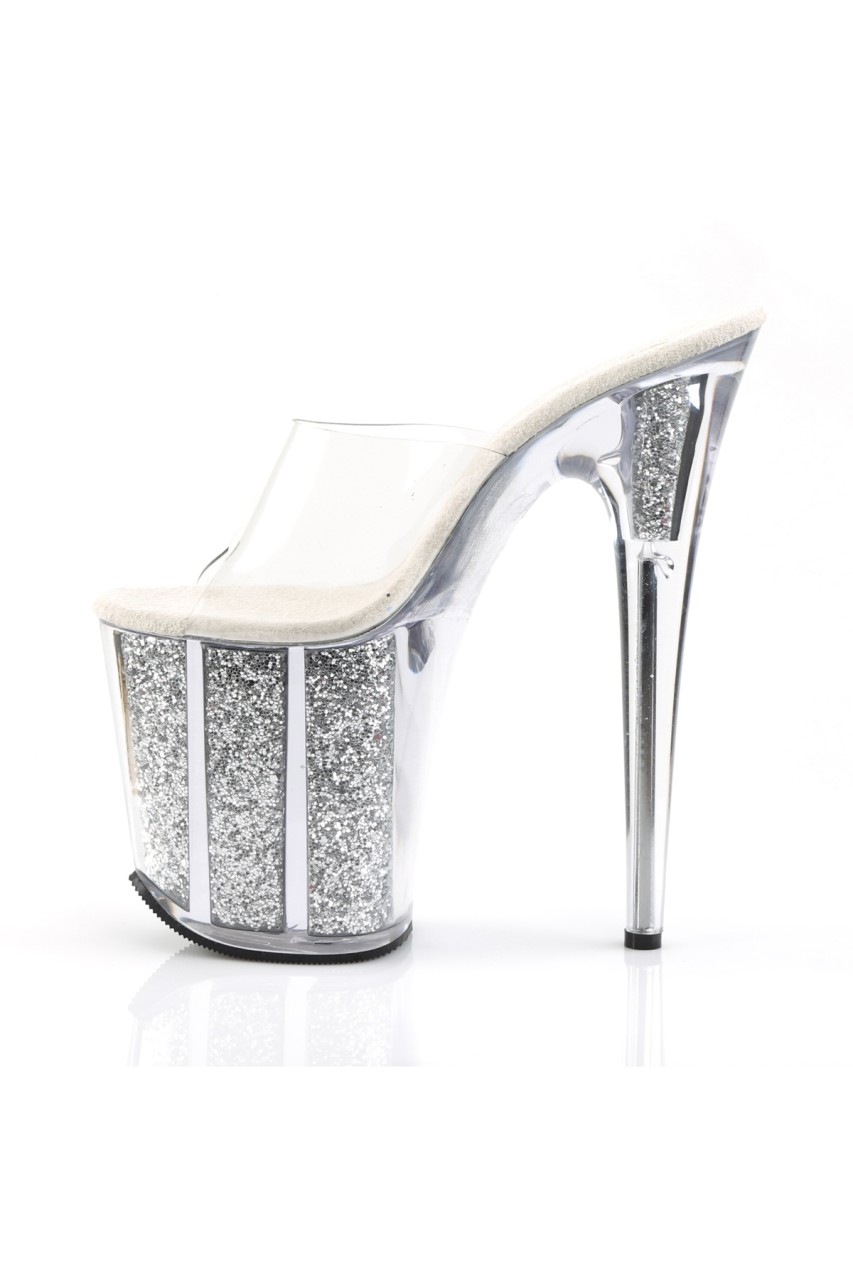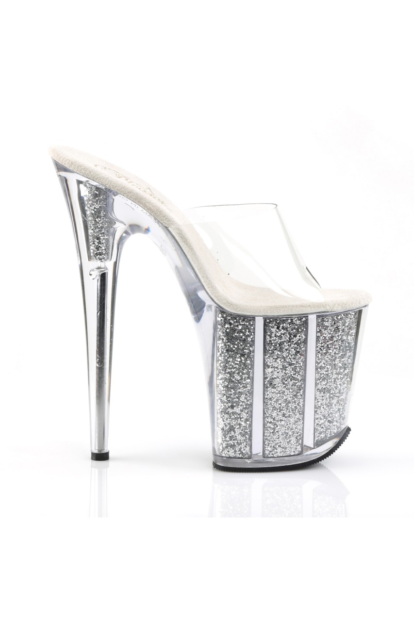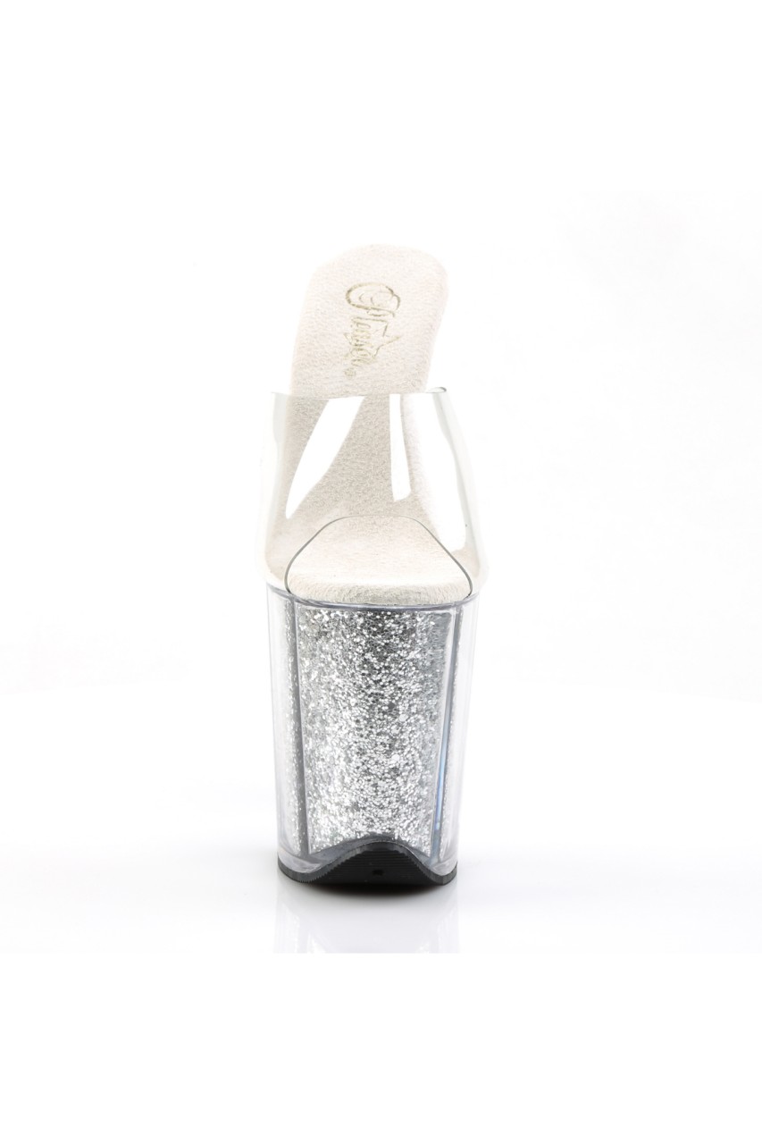 8″” (20.3cm) Stiletto Heel, 4″” (10.2cm) Platform Slide Featuring Glitter-filled Platform