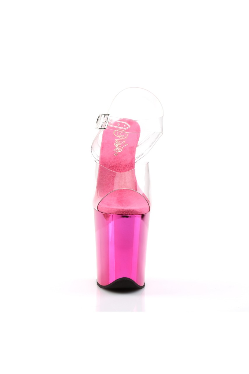 8″” (20.3cm) Stiletto Heel, 4″” (10.2cm) Platform Ankle Strap Sandal with Chrome Plated Bottom