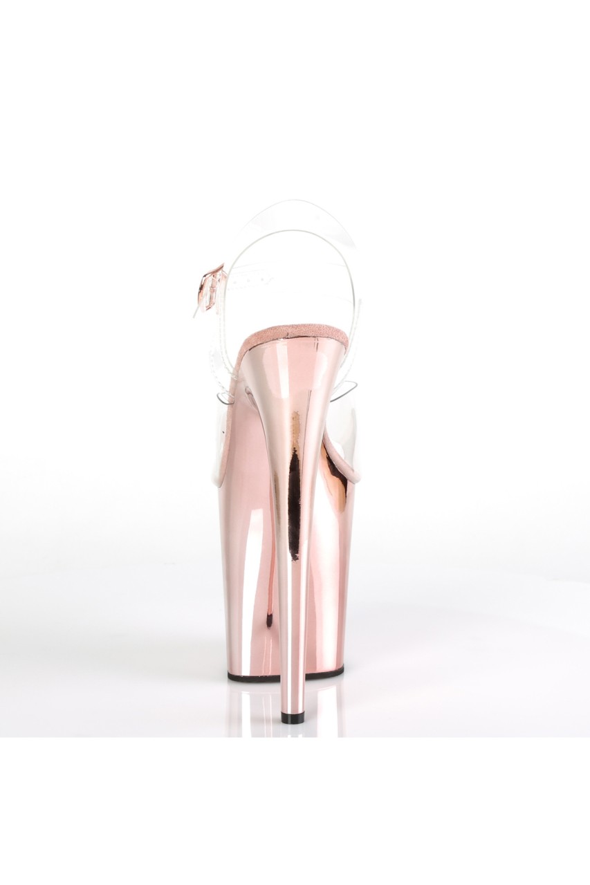 8″” (203mm) Heel, 4″” (102mm) Platform Ankle Strap Sandal w/ Chrome Plated Platform Bottom