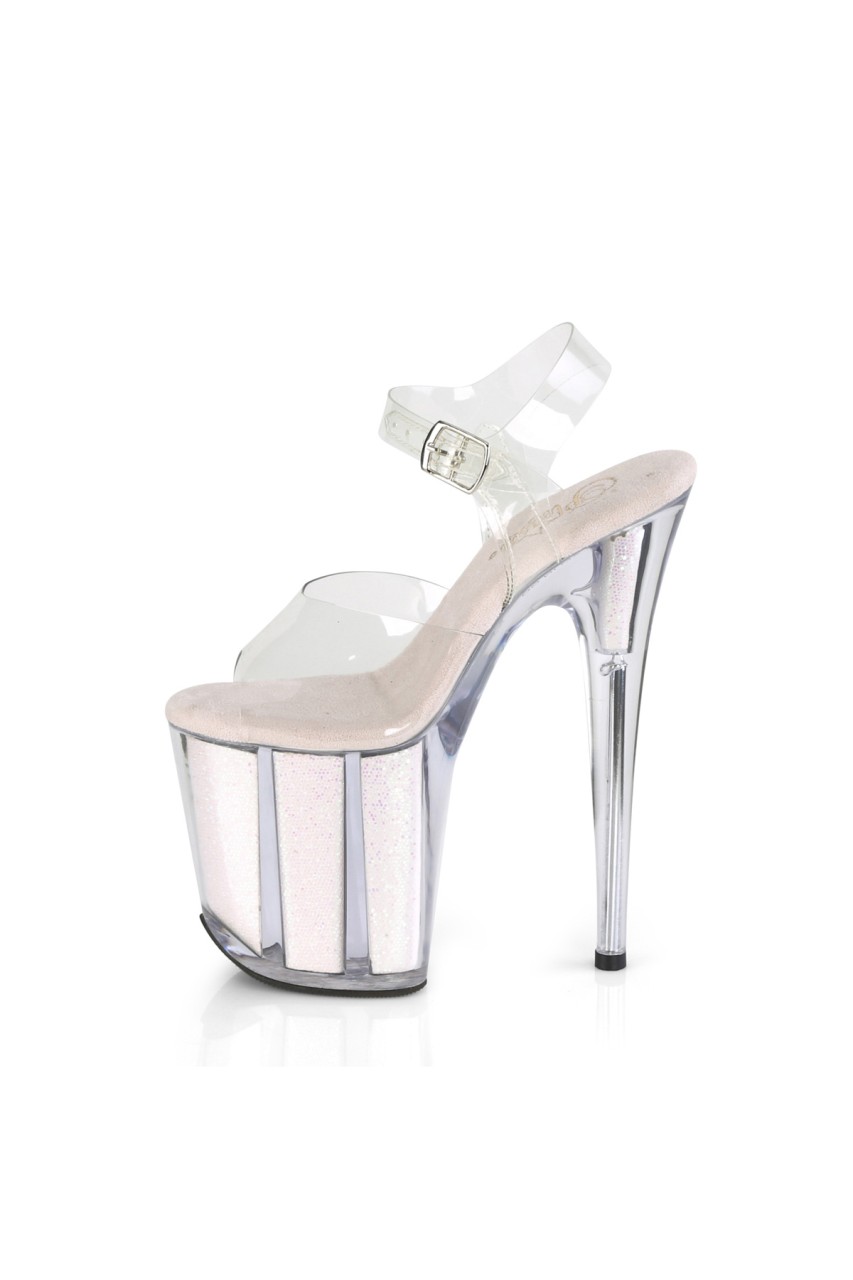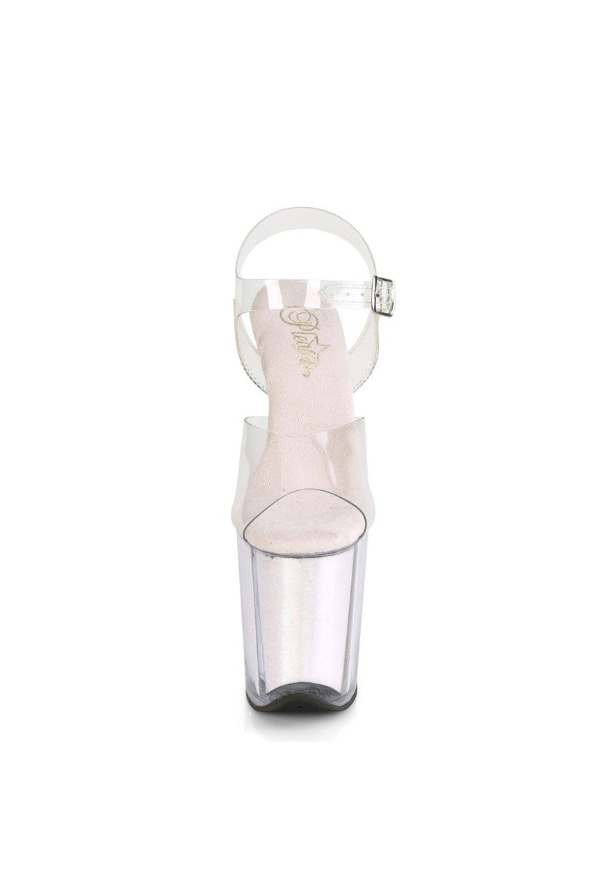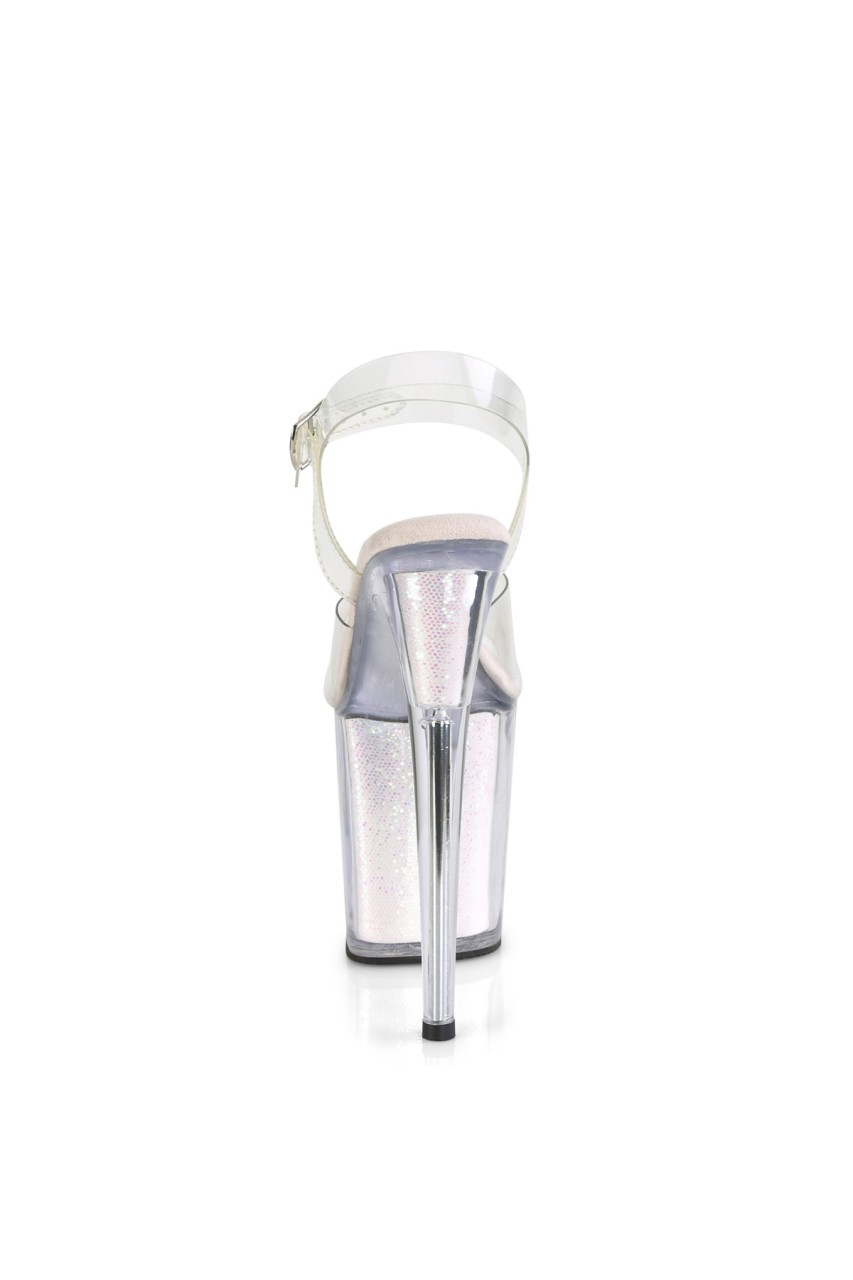 8″” (200mm) Heel, 4″” (100mm) Platform Ankle Strap Sandal Featuring Glitter Fabric Inserts in the Platform Bottom