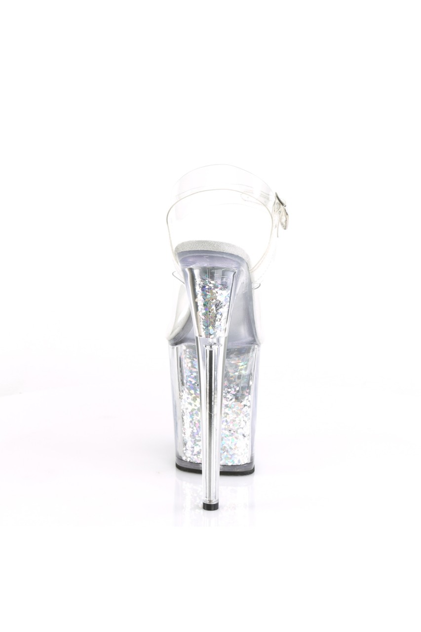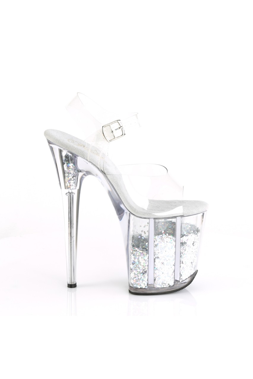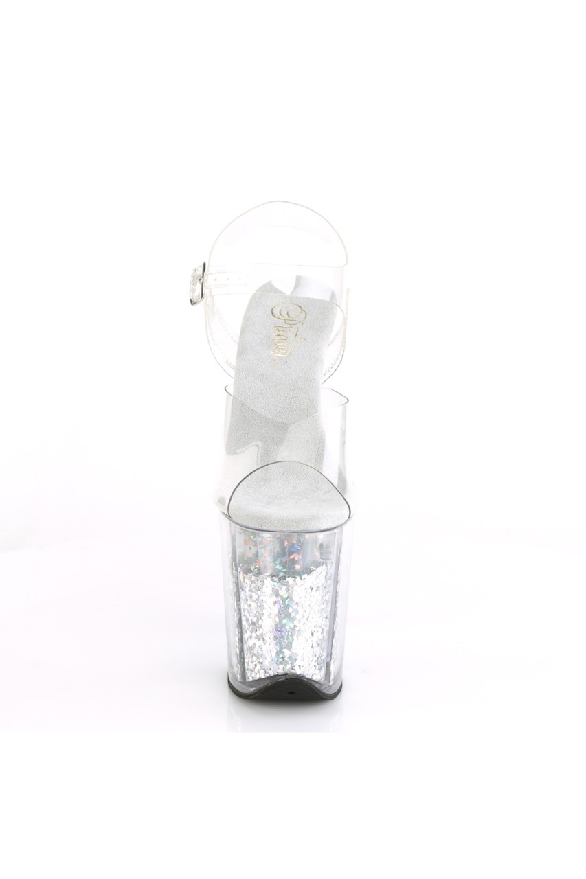 8″” (200mm) Heel, 4″” (100mm) Platform Ankle Strap Sandal w/ Holographic Glitter Filled Platform