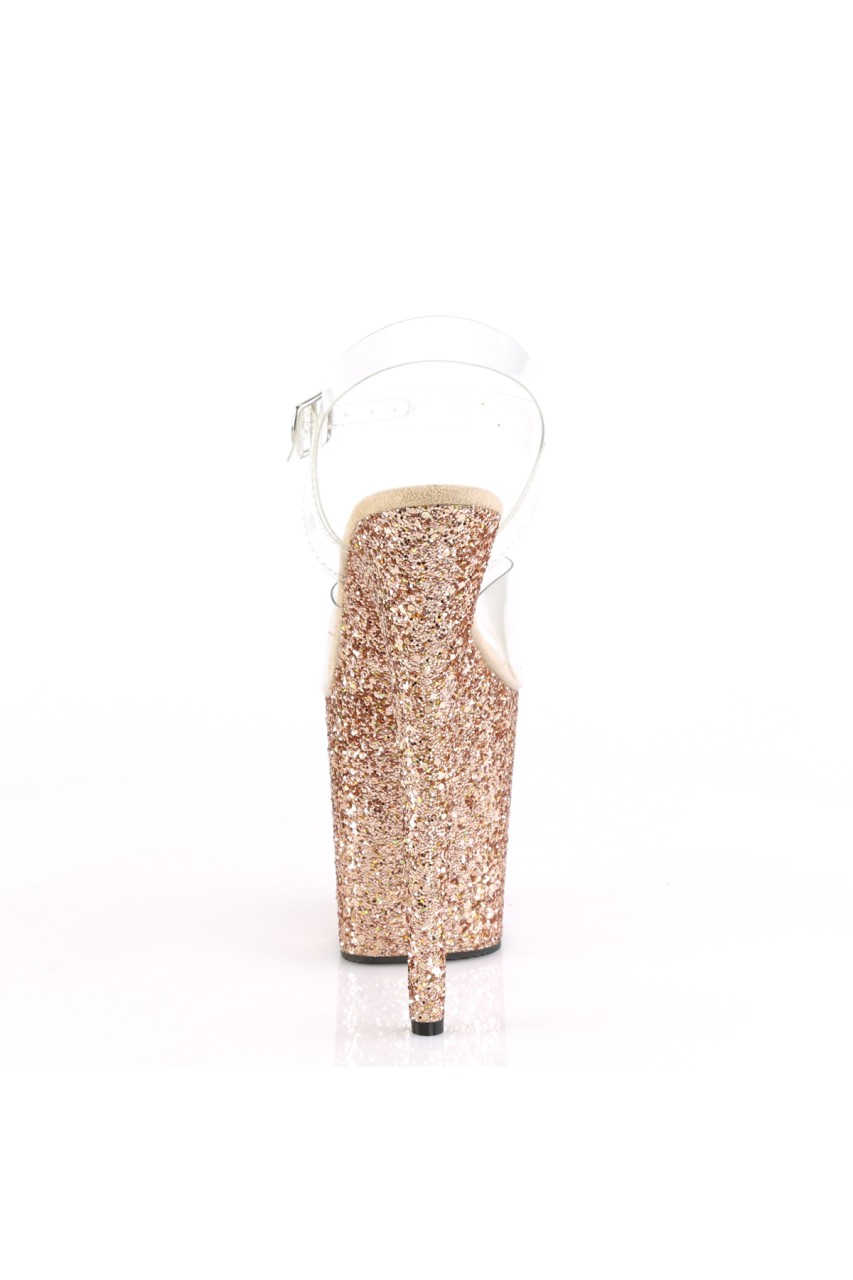 8″” (200mm) Heel, 4″” (100mm) Platform Ankle Strap Sandal Featuring the Entire Platform Bottom Covered w/ Glitters