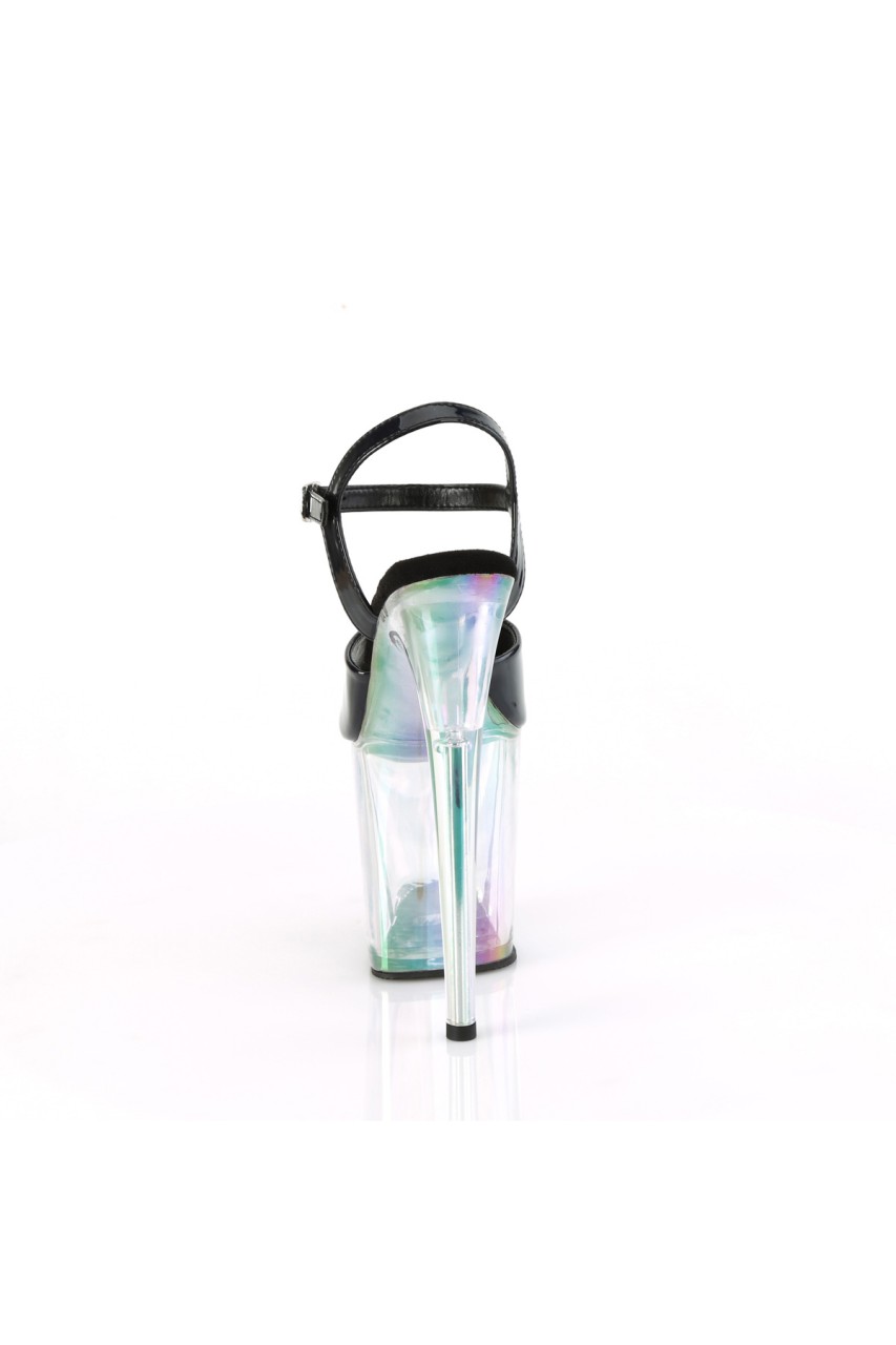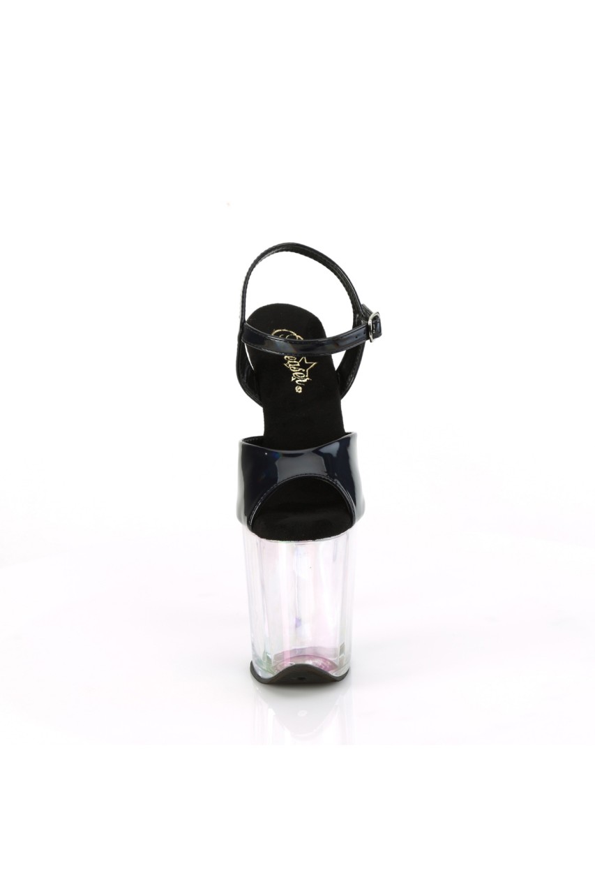 8″” (200mm) Heel, 4″” (100mm) Platform Ankle Strap Sandal Featuring Holographic Tinted Platform Bottom