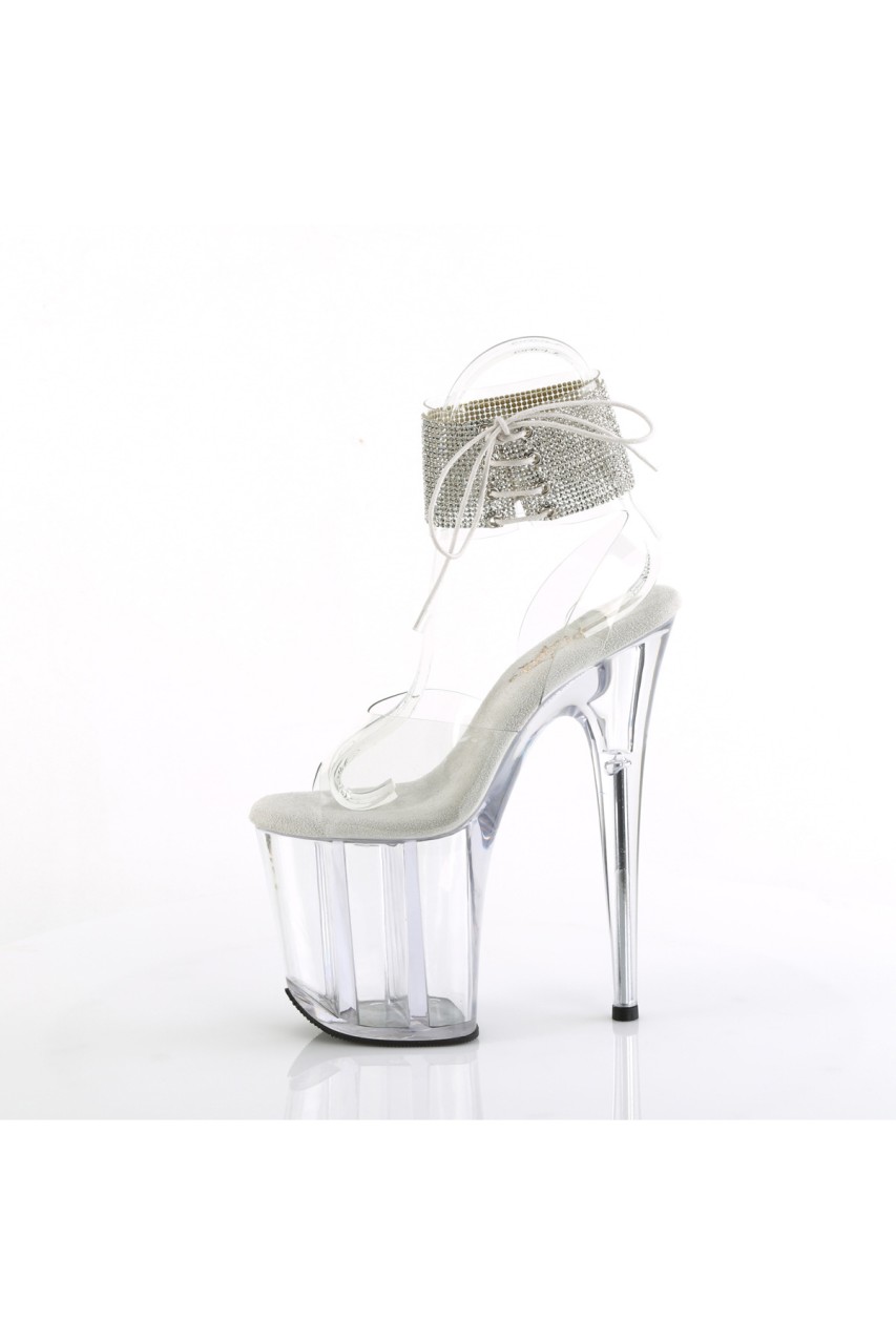 8″” (200mm) Heel, 4″” (100mm) Platform Rhinestone Embellished Ankle Cuff Sandal