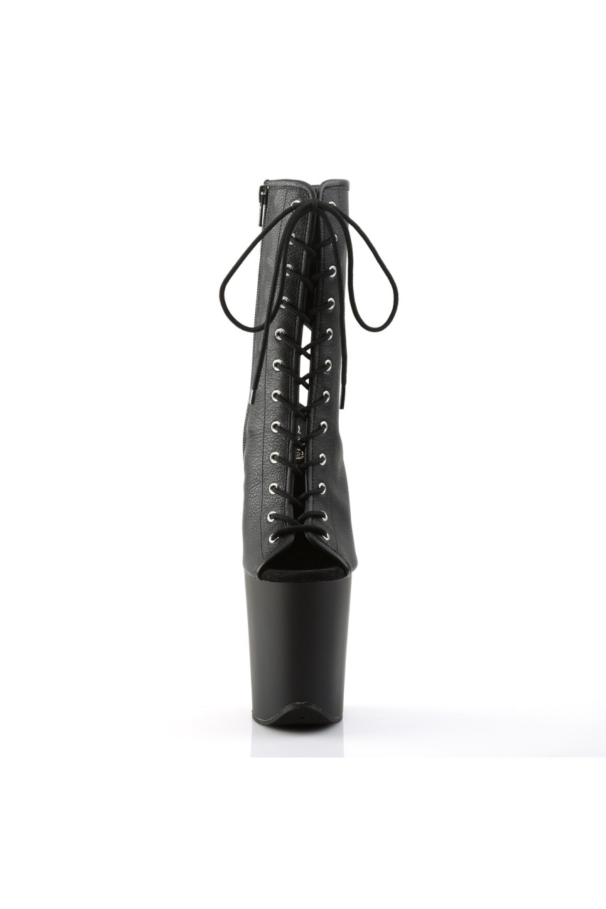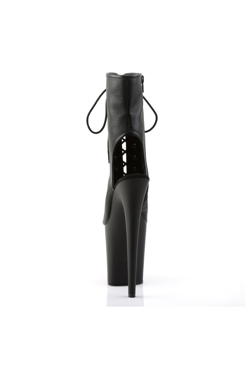 8″” (20.3cm) Stiletto Heel, 4″” (10.2cm) Platform Peep Toe Open Heel Lace-Up Front Ankle Boot, Inner Side Zip Closure