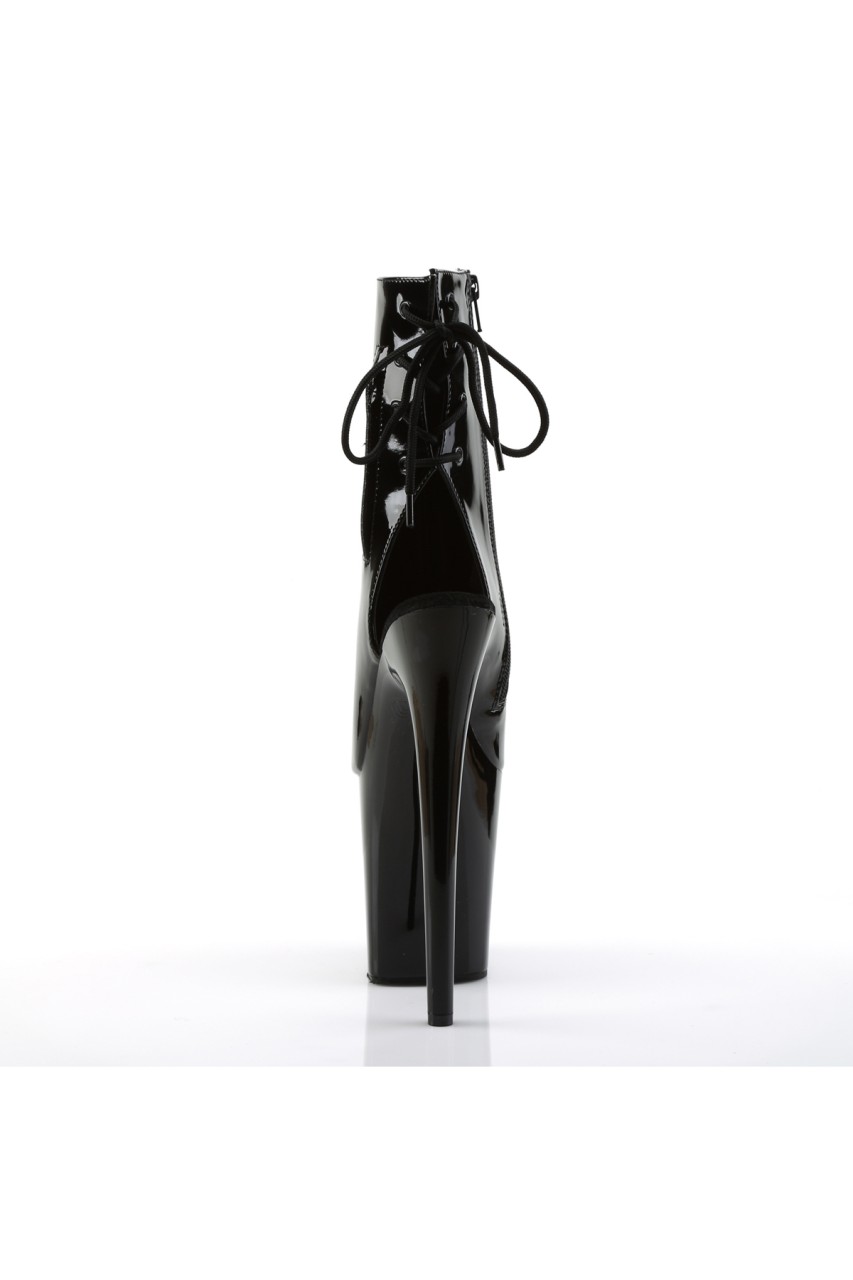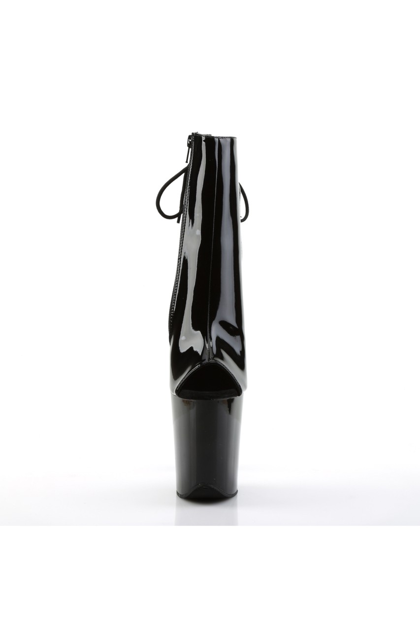 8″” (20.3cm) Stiletto Heel, 4″” (10.2cm) Platform Open Toe/Heel Back Lace-Up Ankle Boot, Inner Side Zip Closure