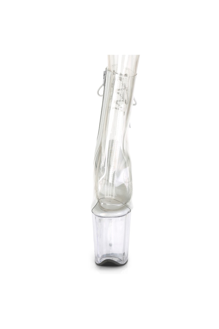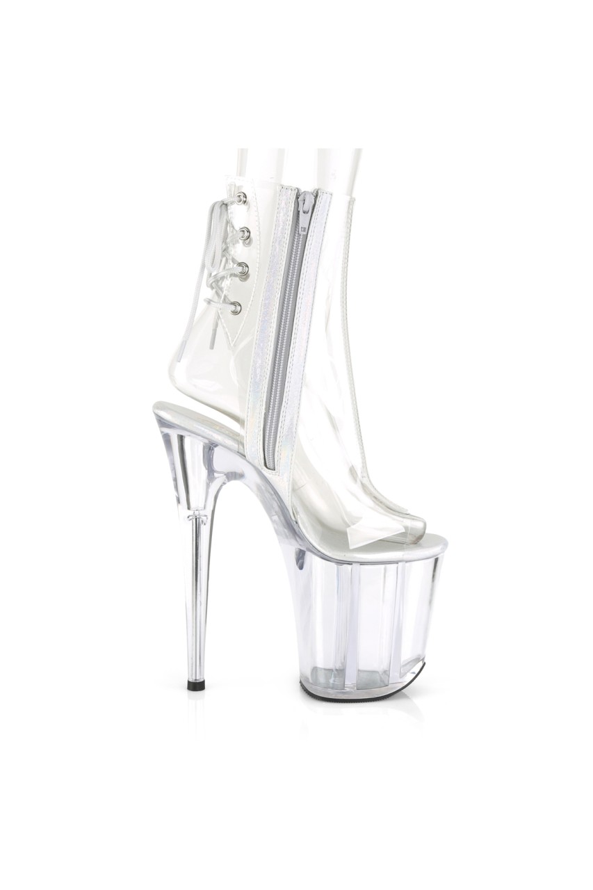 8″” (200mm) Heel, 4″” (100mm) Platform Open Toe/Heel Lace-Up Back Ankle Boot, Inner Side Zip Closure