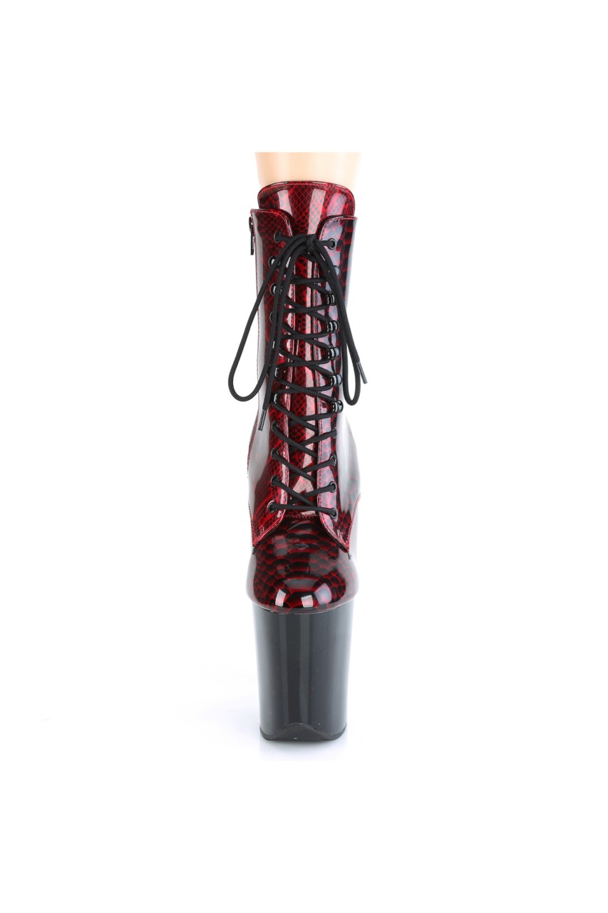 8″” (200mm) Heel, 4″” (100mm) Platform Lace-Up Front Snake Skin Print Ankle Boot, Inner Side Zip Closure