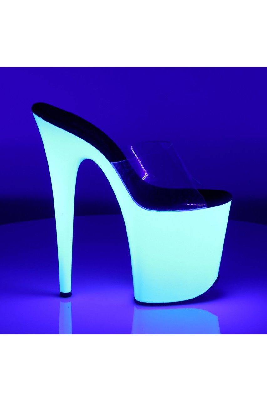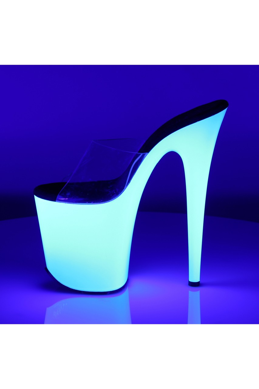 8″” (20.3cm) Stiletto Heel, 4″” (10.2cm) Platform Slide Featuring Entire Bottom Neon UV Reactive