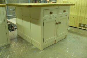 All our cabinets are made from 100% pine boards. Our worktops are available in hard wearing oak in 25mm and 40mm thicknesses. We can make worktops from composite laminate if you prefer.