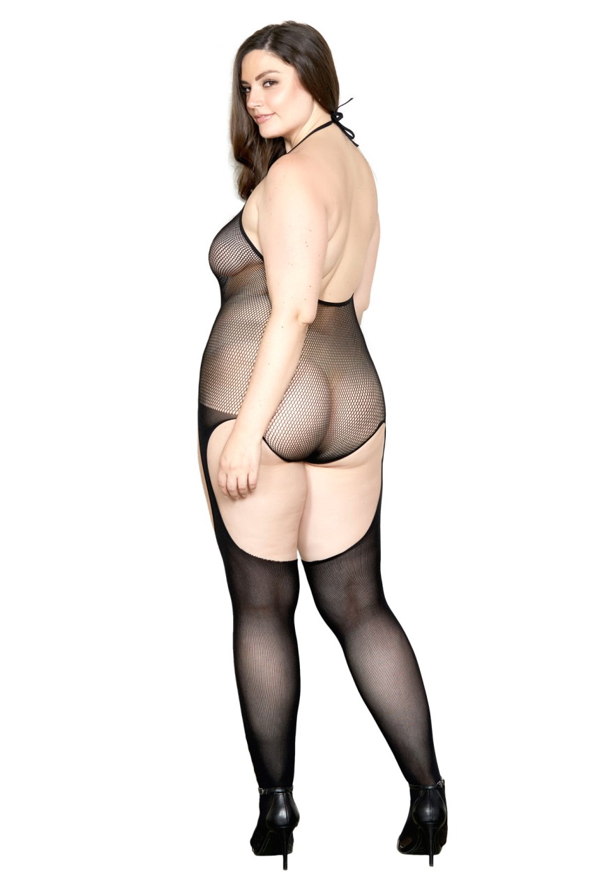 Fishnet Bodystocking With Lace Up Front And Leg.