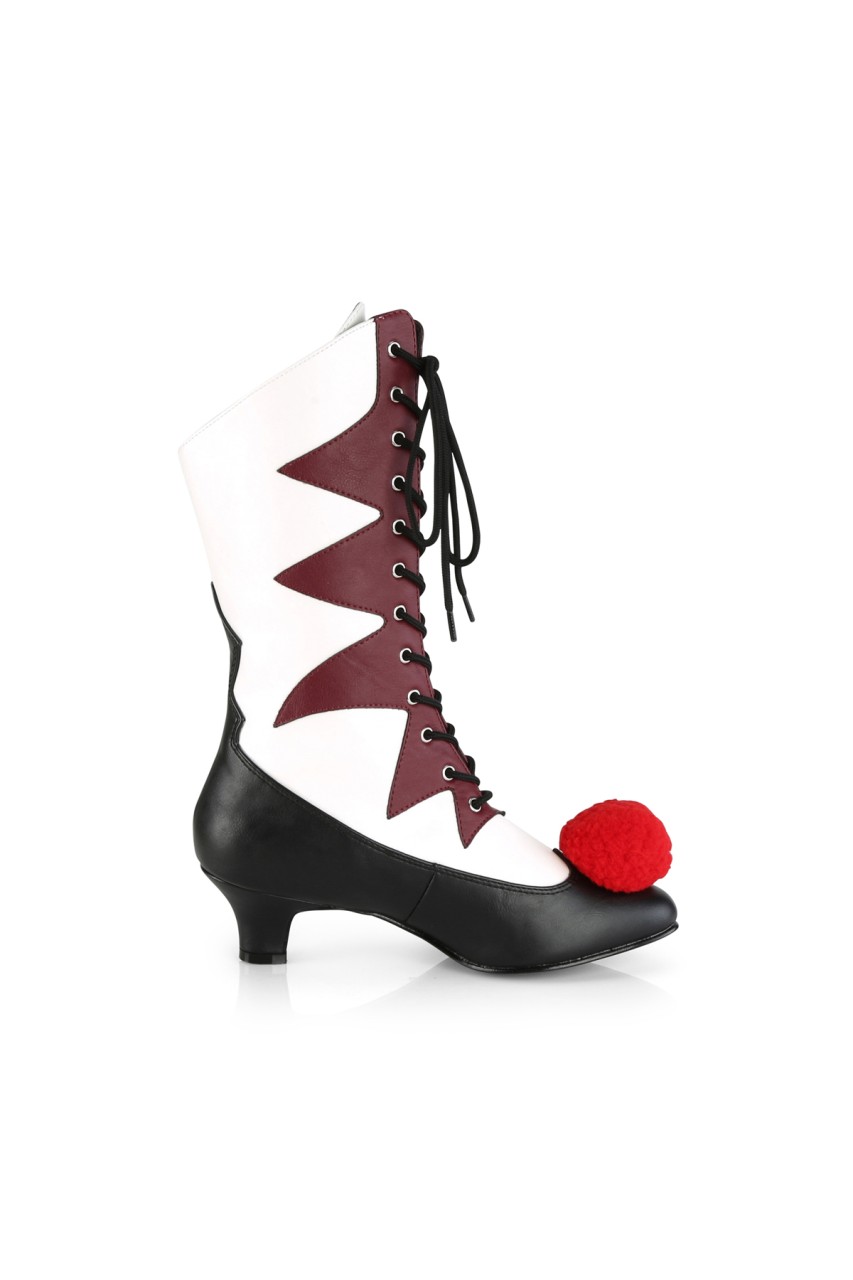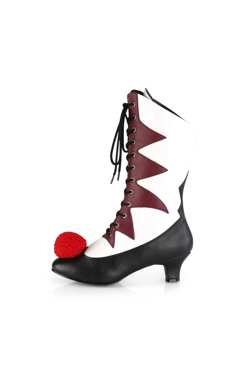 2″” (5.1cm) Kitten Heel Lace-Up Front Mid-Calf Boot Featuring Clown Shoe Design w/ Cotton Puff on Toe, Inner Side Zip Closure