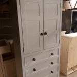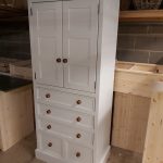 A handmade freestanding pantry / larder cupboard made in our Wetherby workshop from solid pine. Hand-painted in farrow and ball “French Pale Grey” with waxed knobs. All add up to make this unit a real must for that country style kitchen.