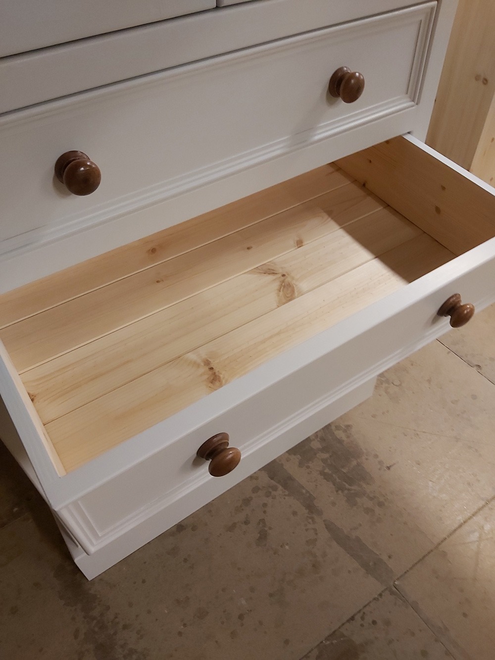 All our cabinets are made from 100% pine boards. Our worktops are available in hard wearing oak in 25mm and 40mm thicknesses. We can make worktops from composite laminate if you prefer.