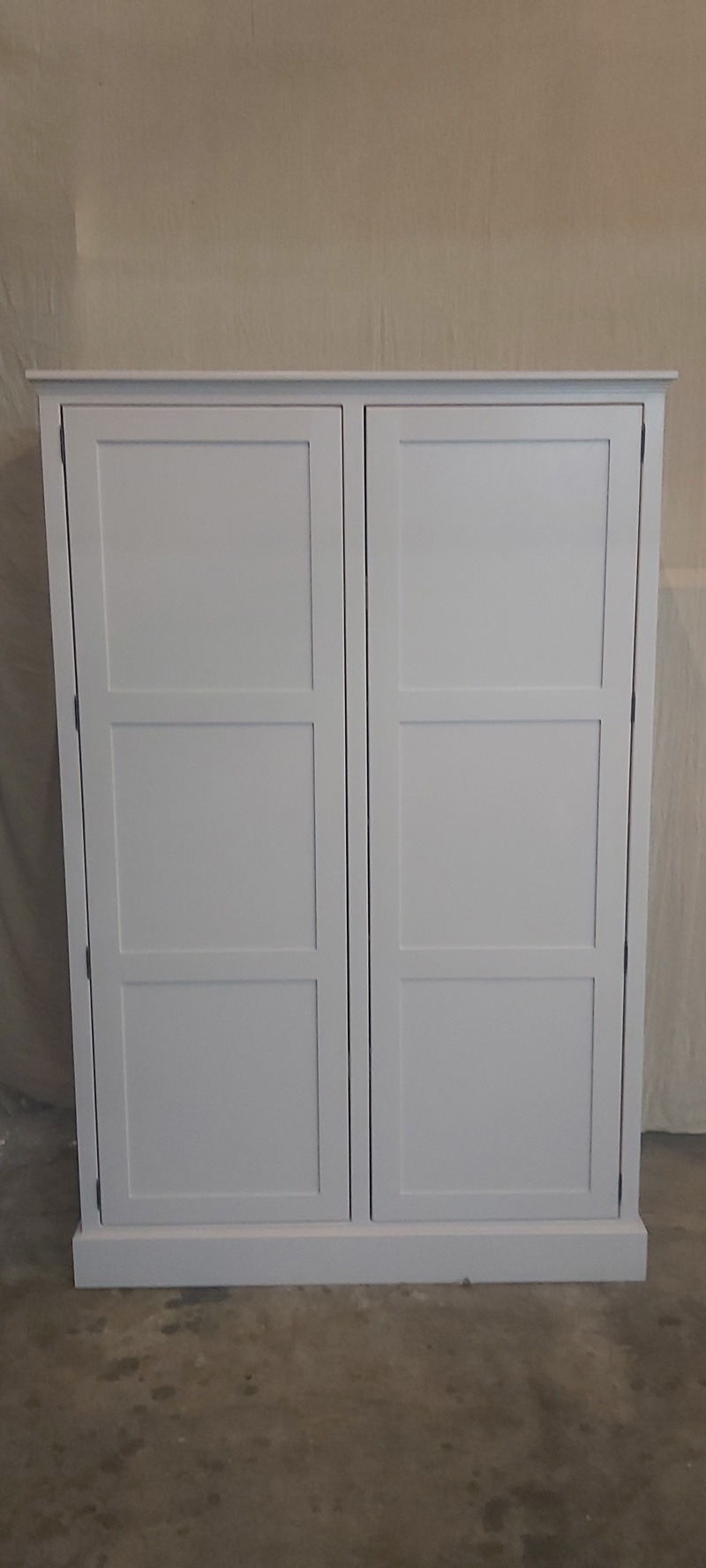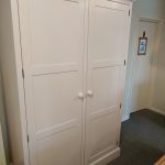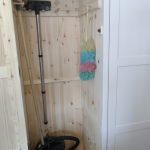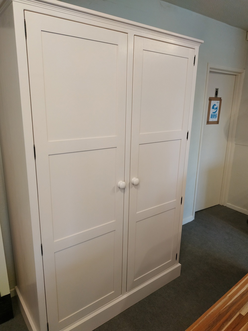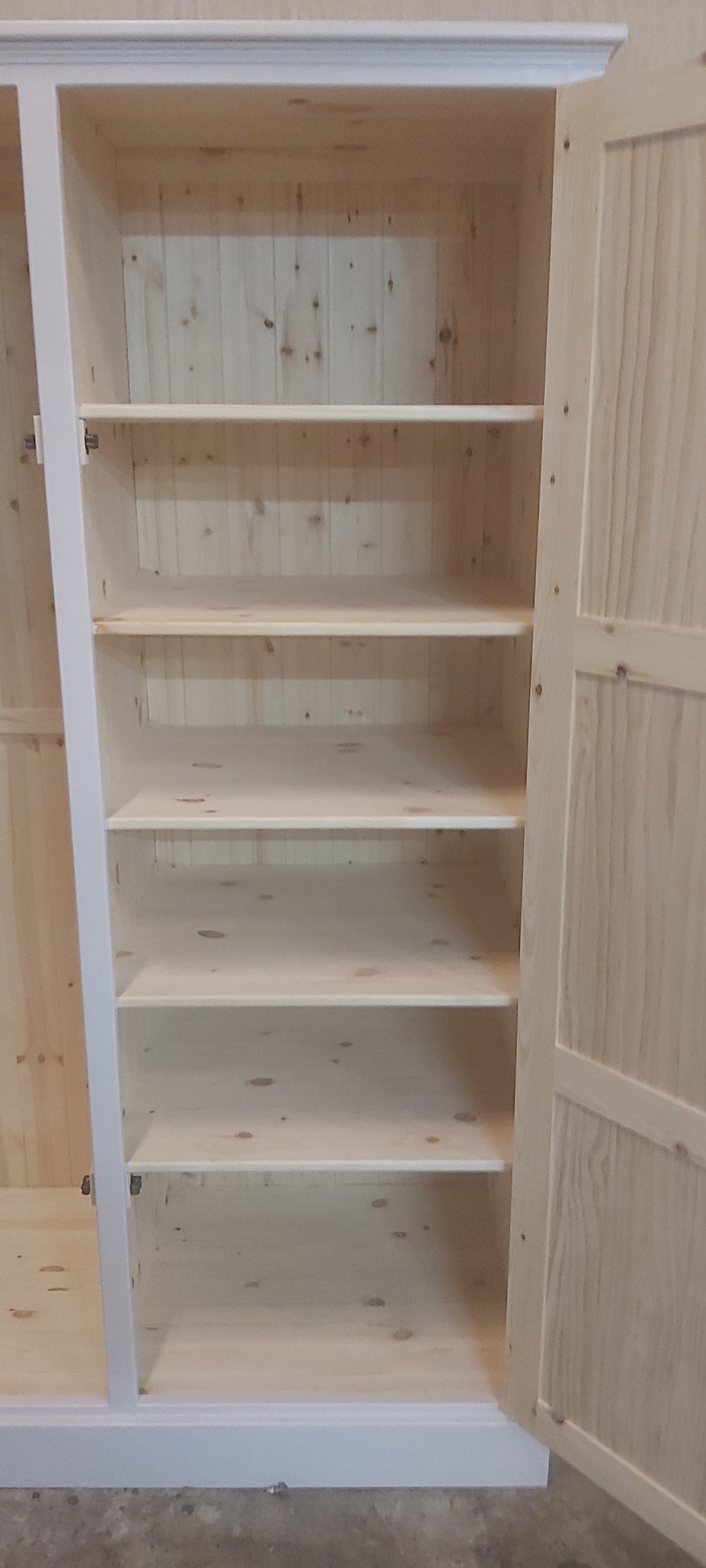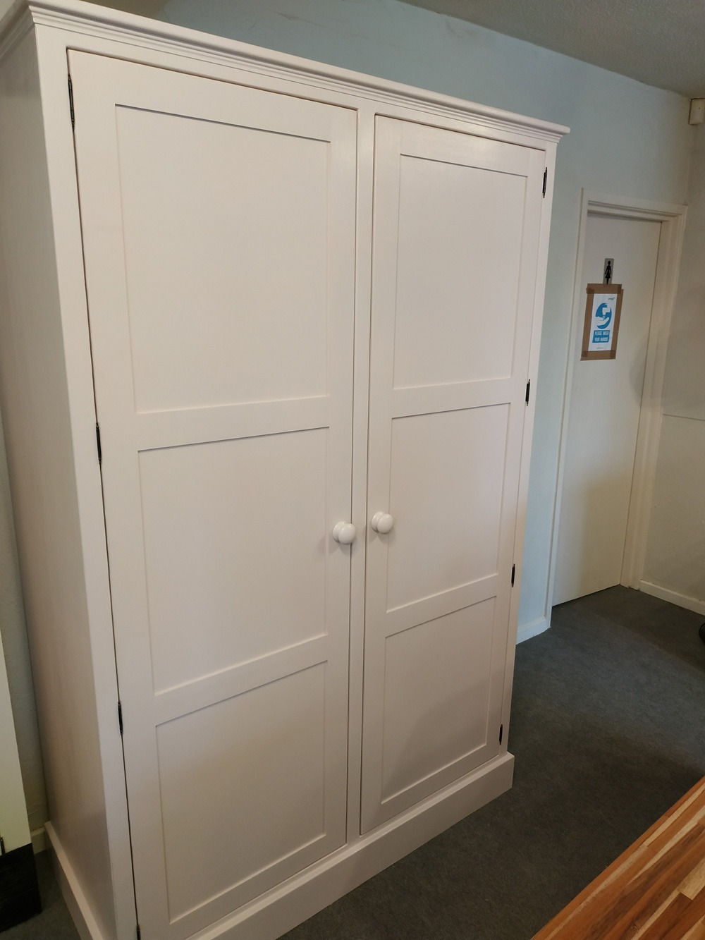 This unit comprises of a large cupboard on the left with space for brooms, mops, buckets and hoovers with timber hooks.