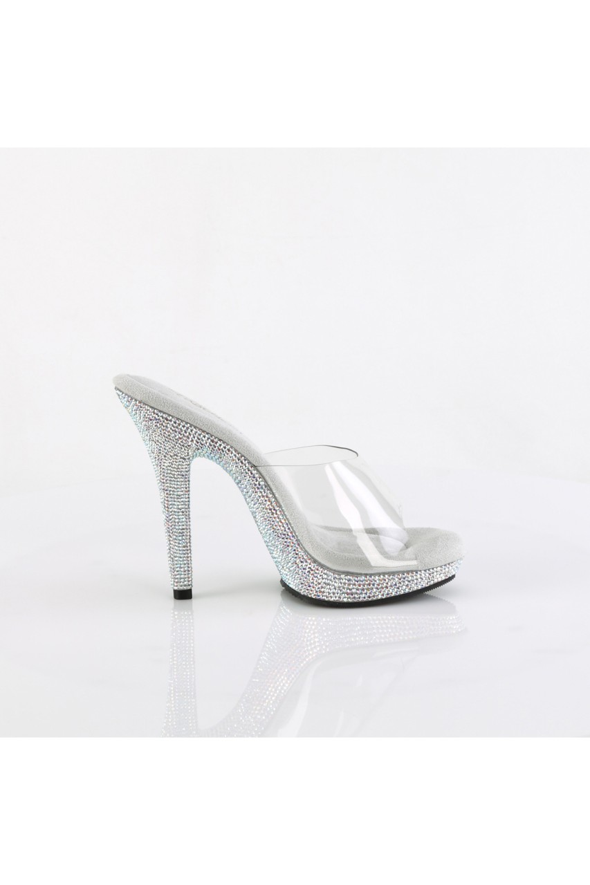 5″” (12.7cm) Heel, 3/4″” (1.9cm) Platform Slide Featuring Rhinestones Encrusted on the Entire Platform Bottom