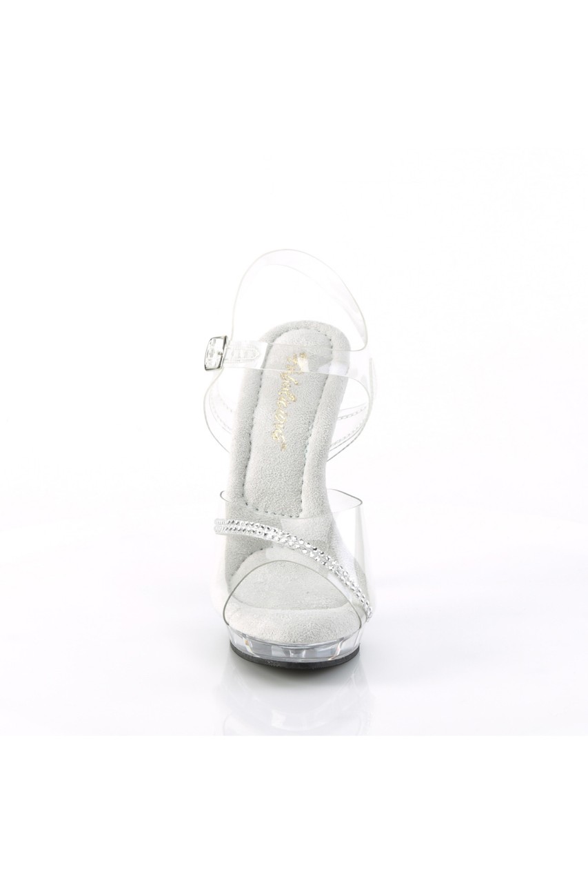 5″” (12.7cm) Heel, 3/4″” (1.9cm) Platform Ankle Strap Sandal Featuring Rhinestone Banded Vamp