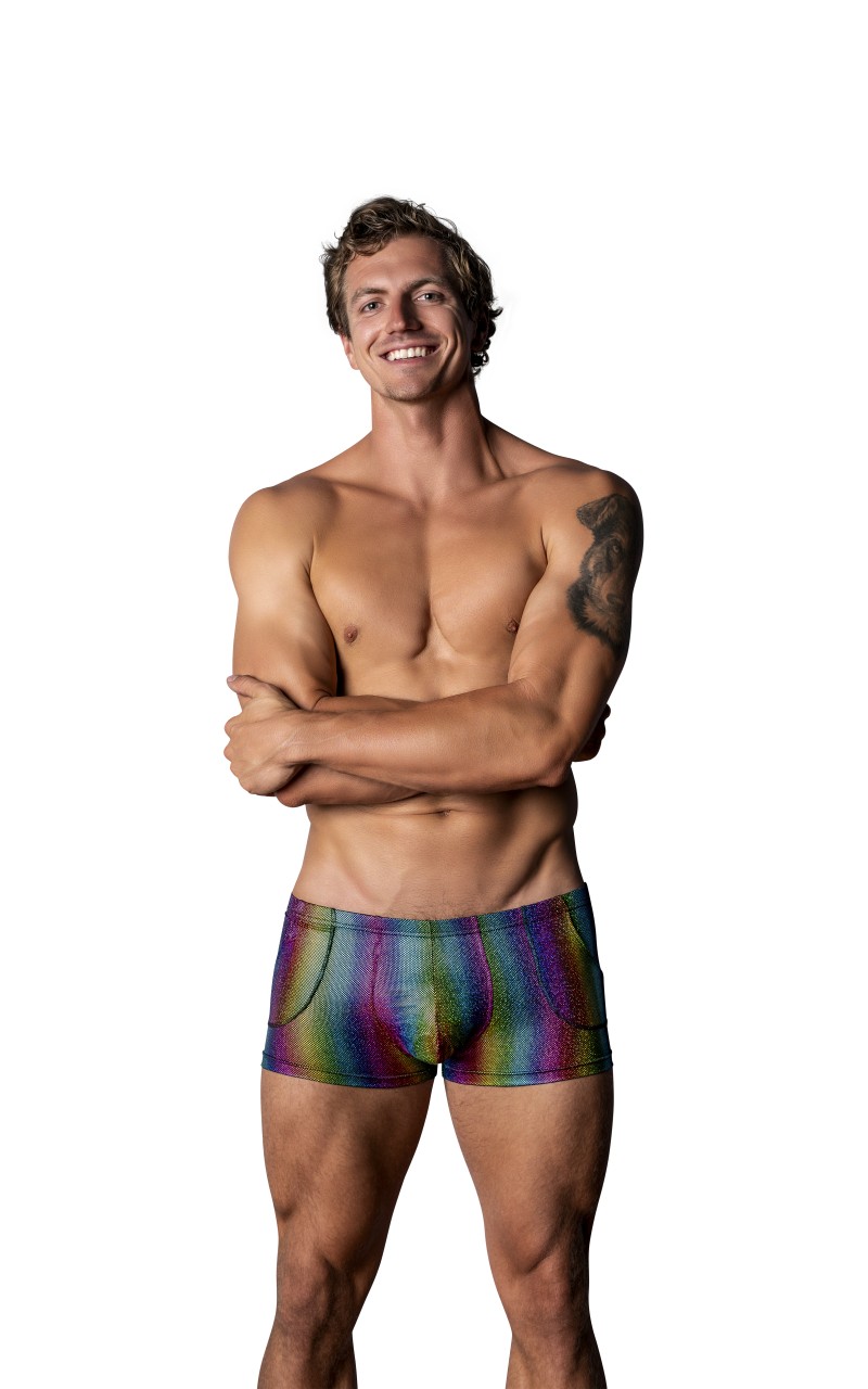 From the Pack & Play collection by Male Power, the Pocket Short with front hip pockets conceal your most private valuable goods. Low cut slimming waistband, high cut legs and a contoured uplift pouch complete this playful short.