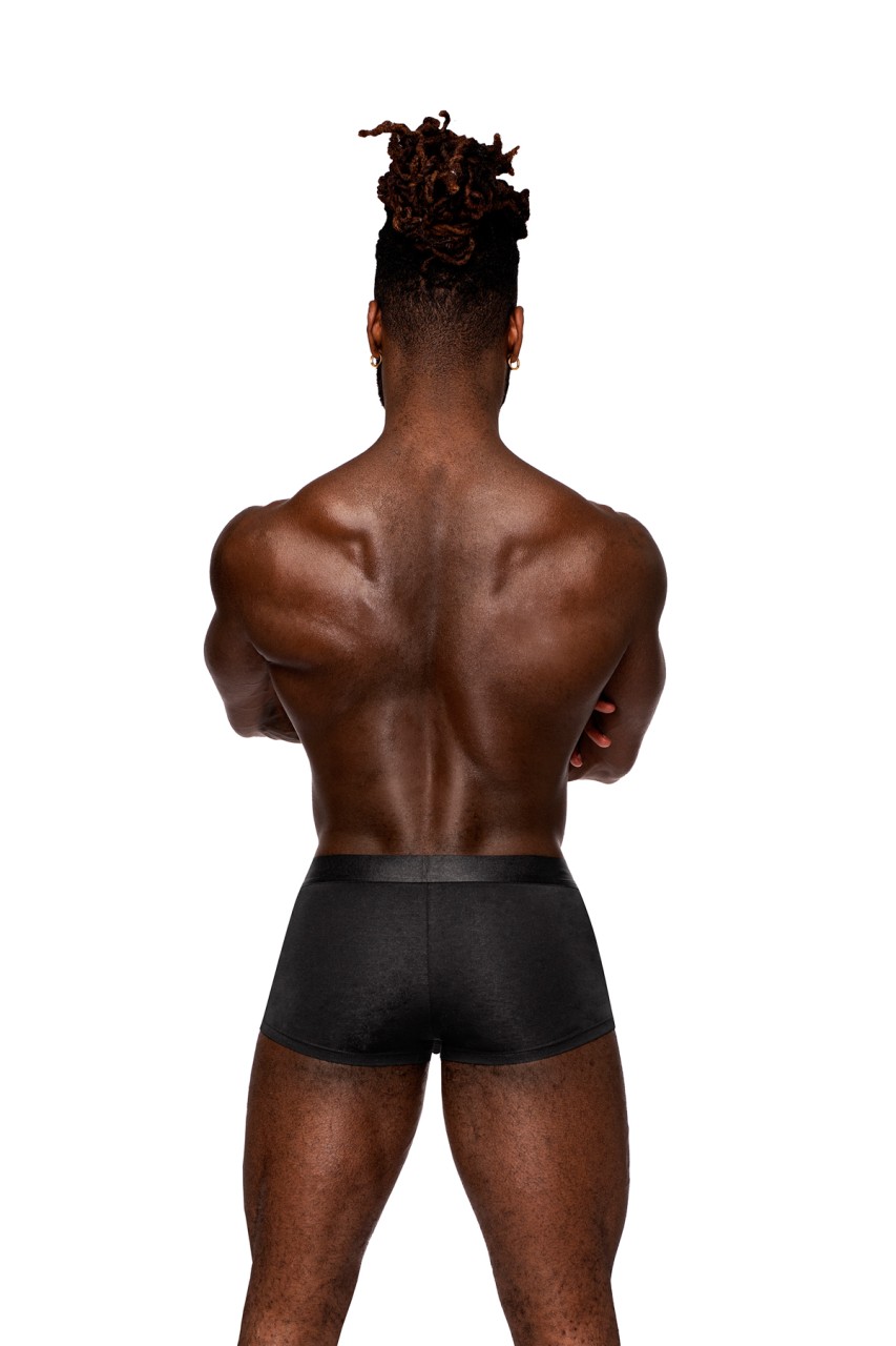From the Easy Breezy collection by Male Power, the Mini Short With Sleeve features a low cut waist and high cut legs. The sleeved pouch boosts and defines. Satin finished elastic waistband with stamped rubberized logo.