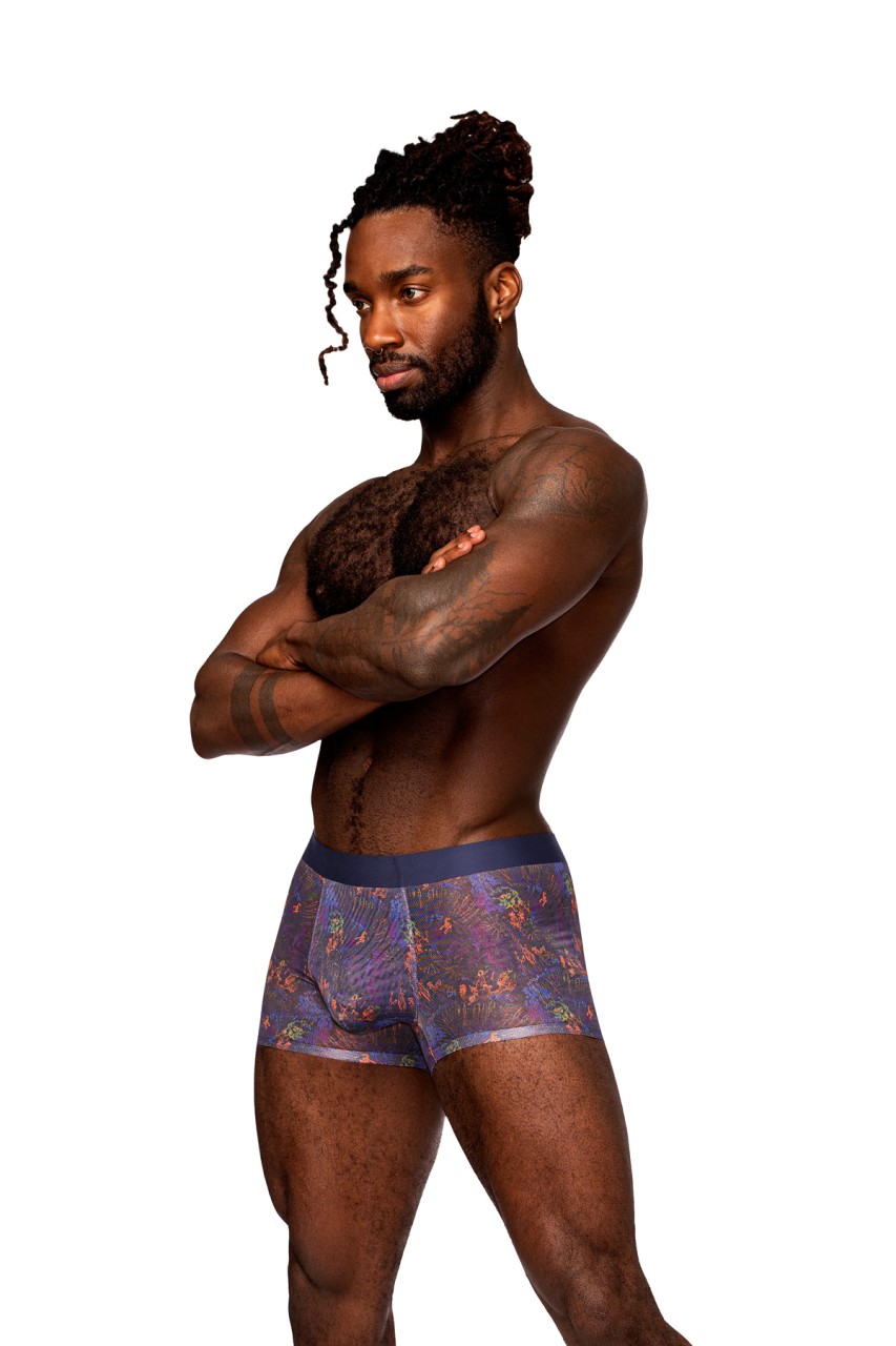 From the Sheer Prints collection by Male Power, the Seamless Sheer Short features a double lined pouch, a tropical flamingo print and plush thin elastic waistband.
