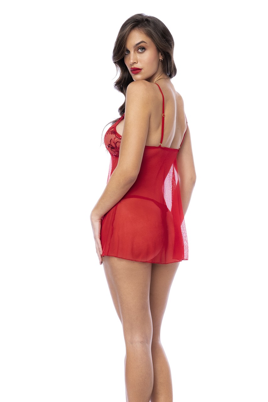 Sequins, floral design and seductive transparency. Your new favorite for any occasion, includes front opening, adjustable straps, matching thong. Loose silhouette.