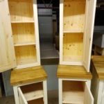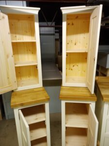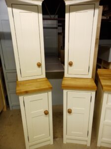 All our cabinets are made from 100% pine boards. Our worktops are available in hard wearing oak in 25mm and 40mm thicknesses. We can make worktops from composite laminate if you prefer.