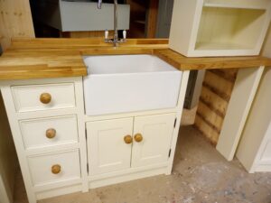- Belfast Sink unit with appliance gap (1717mm long, 620mm deep, 955mm high) includes sink and chrome mixer tap.