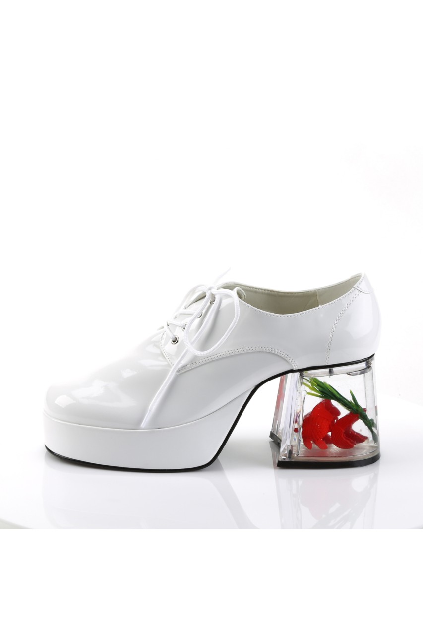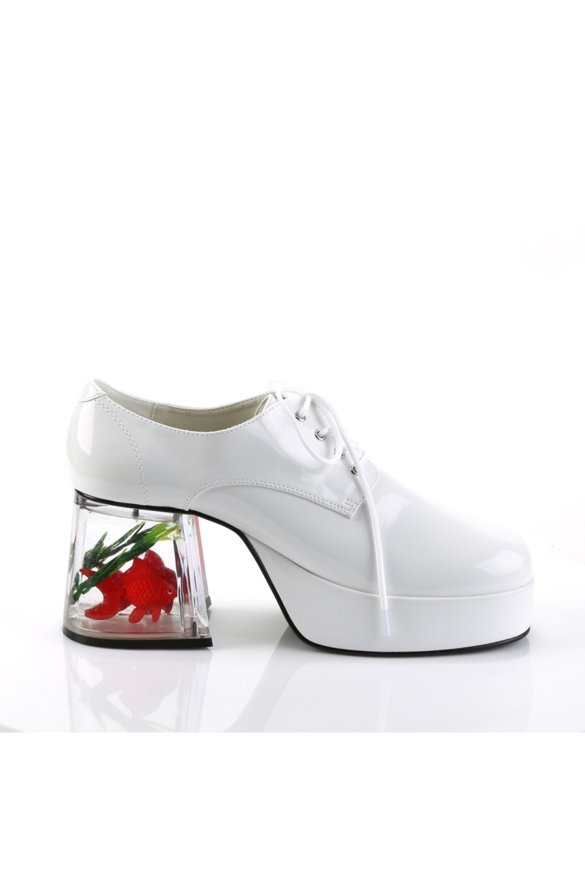 3.5″” (8.9cm) Platform, 1 1/2″” (3.8cm) Platform Men’s Disco Shoes Featuring Floating Fish Inner Side Heel