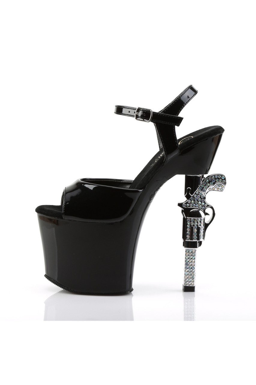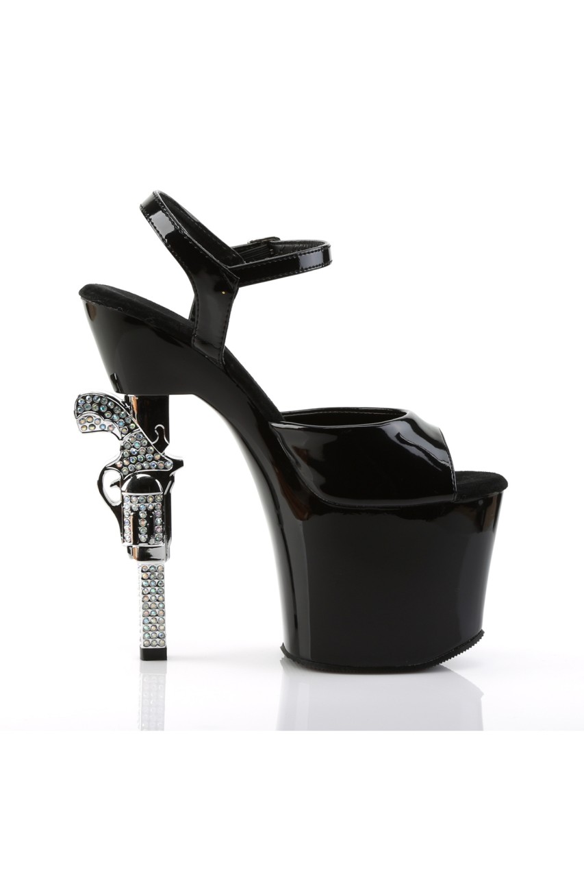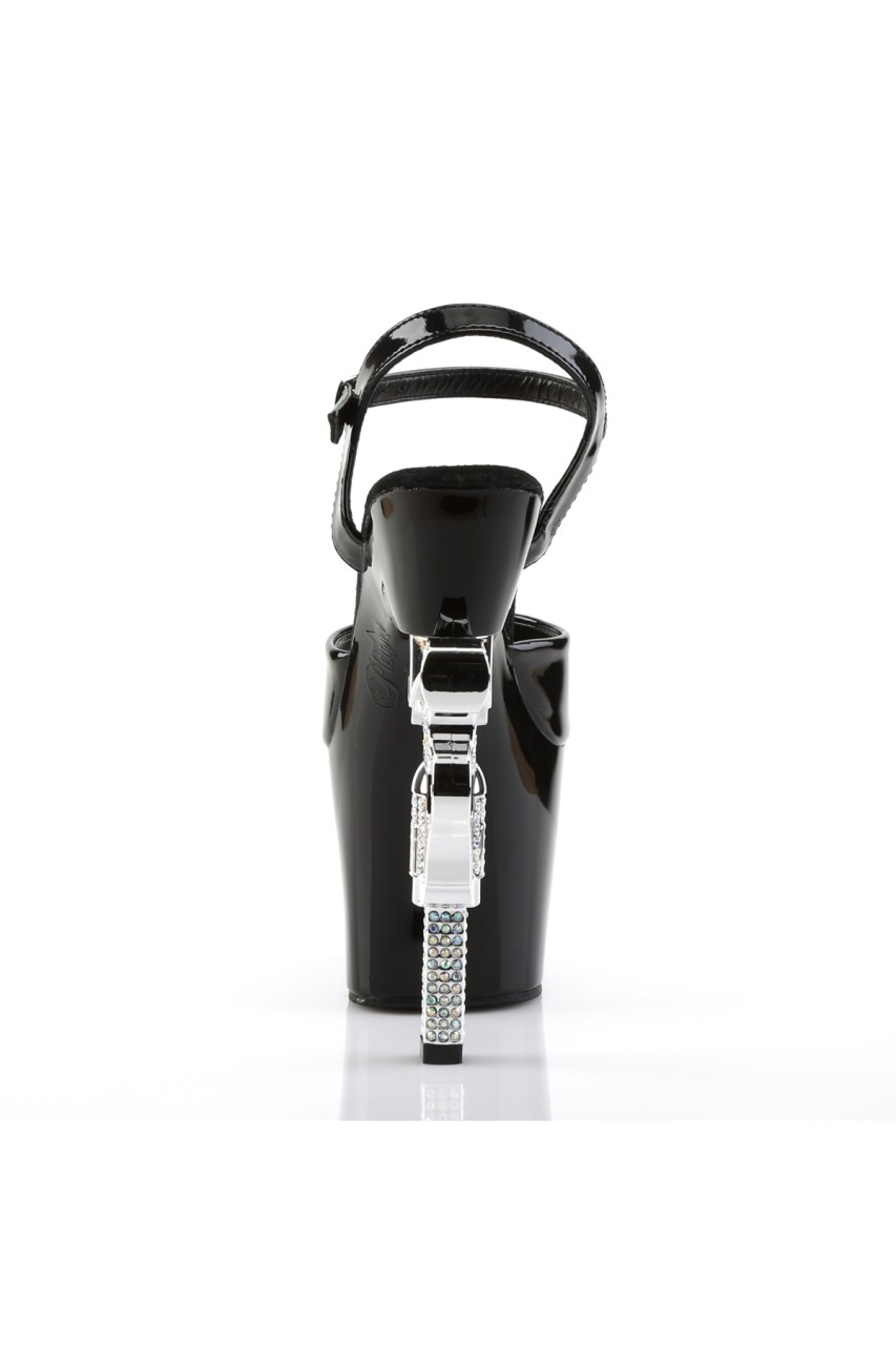 7″” (17.8cm) Rhinestone Embellished Gun Heel, 3 1/4″” (8.3cm) Platform Ankle Strap Sandal