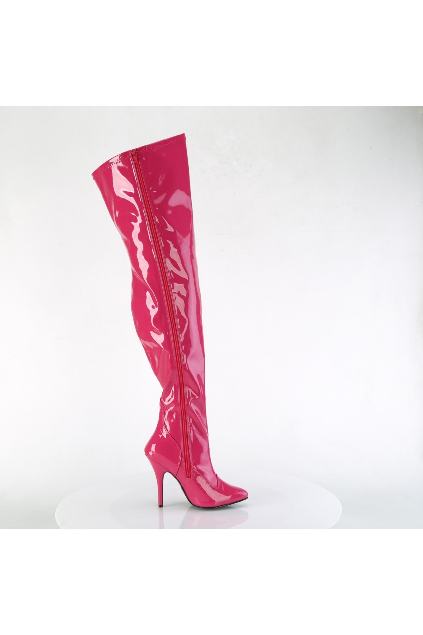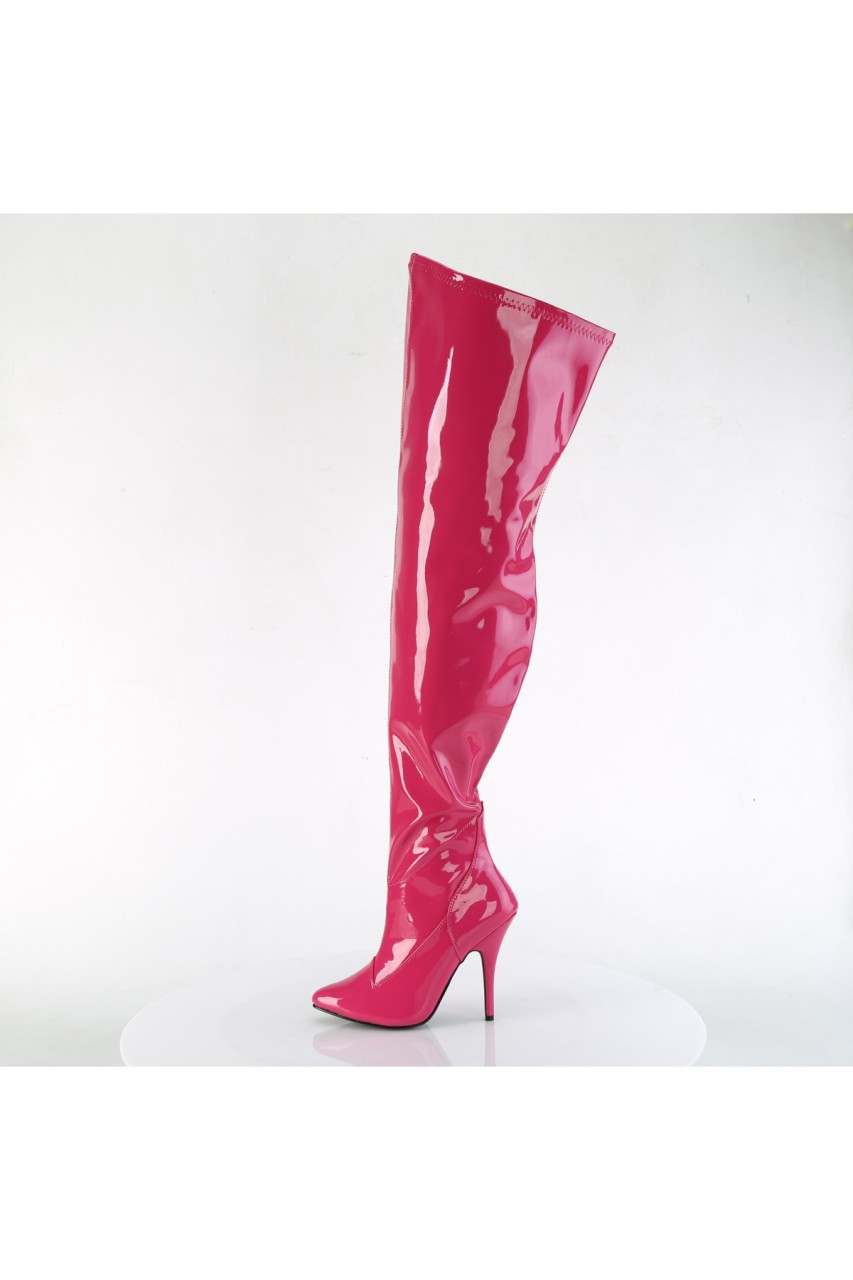 5″” (127mm) Stiletto Heel Wide Shaft Stretch Thigh High Boot, Full-Length Inner Side Zip Closure