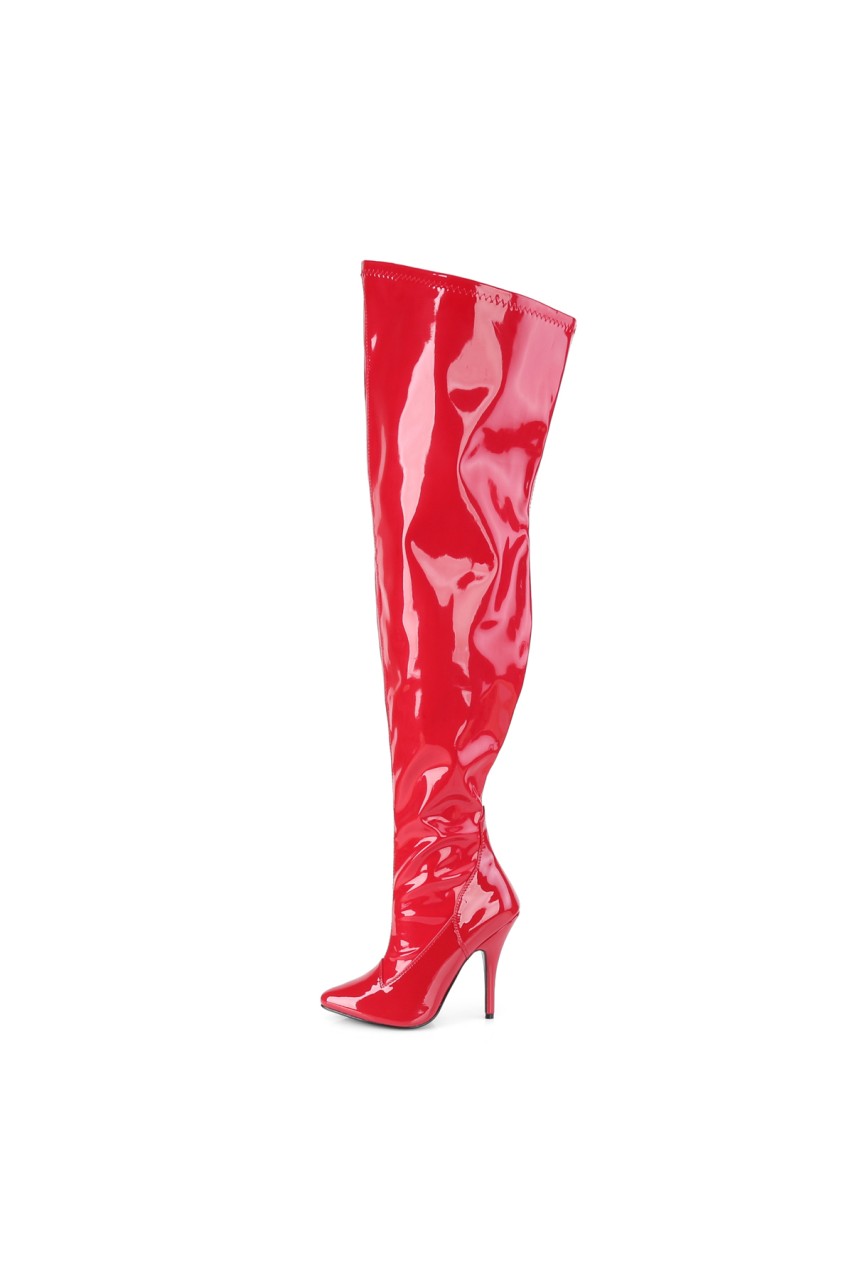 5″” (127mm) Heel Wide Calf Stretch Thigh High Boot, Inner Side Zip Closure