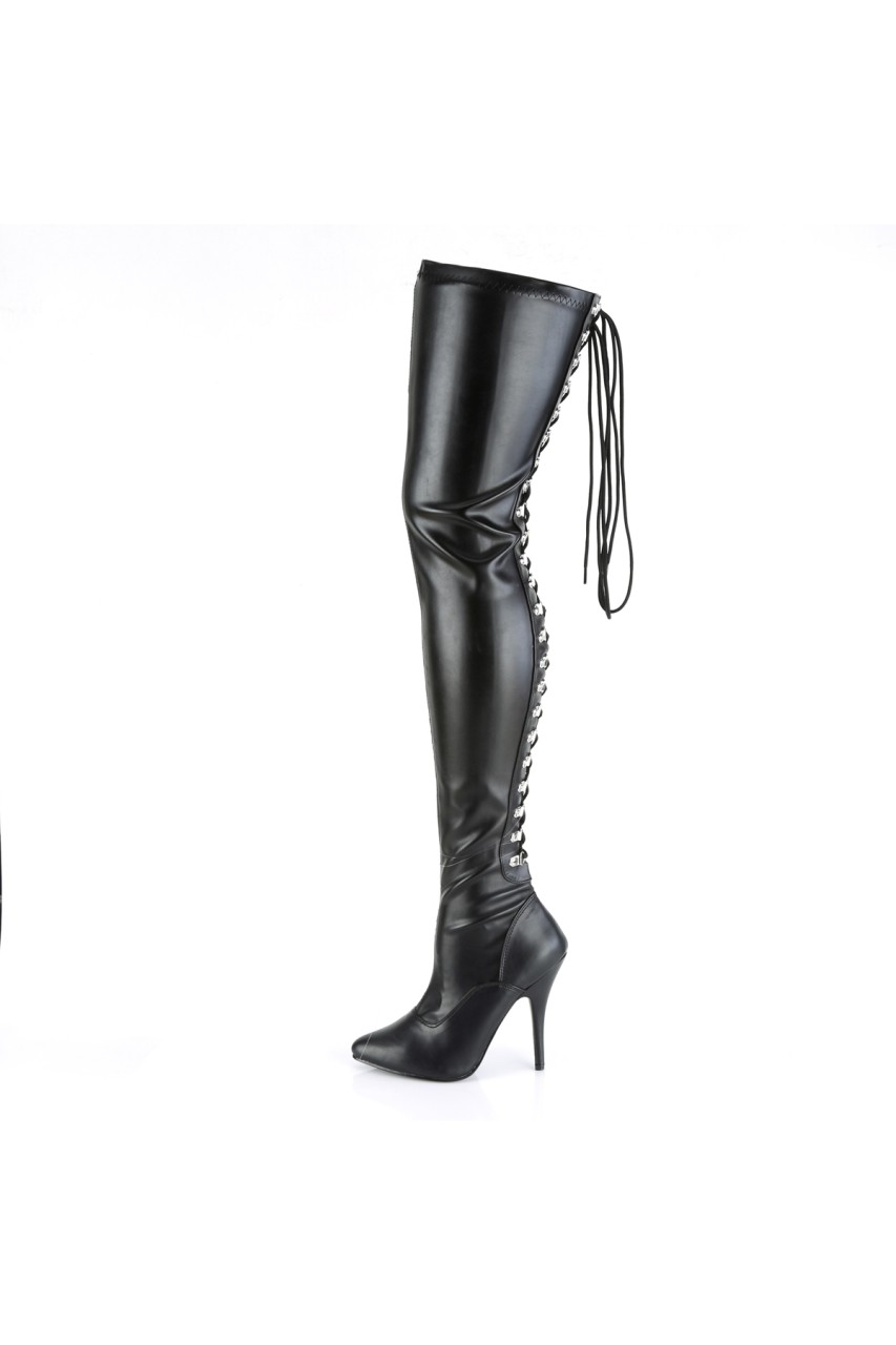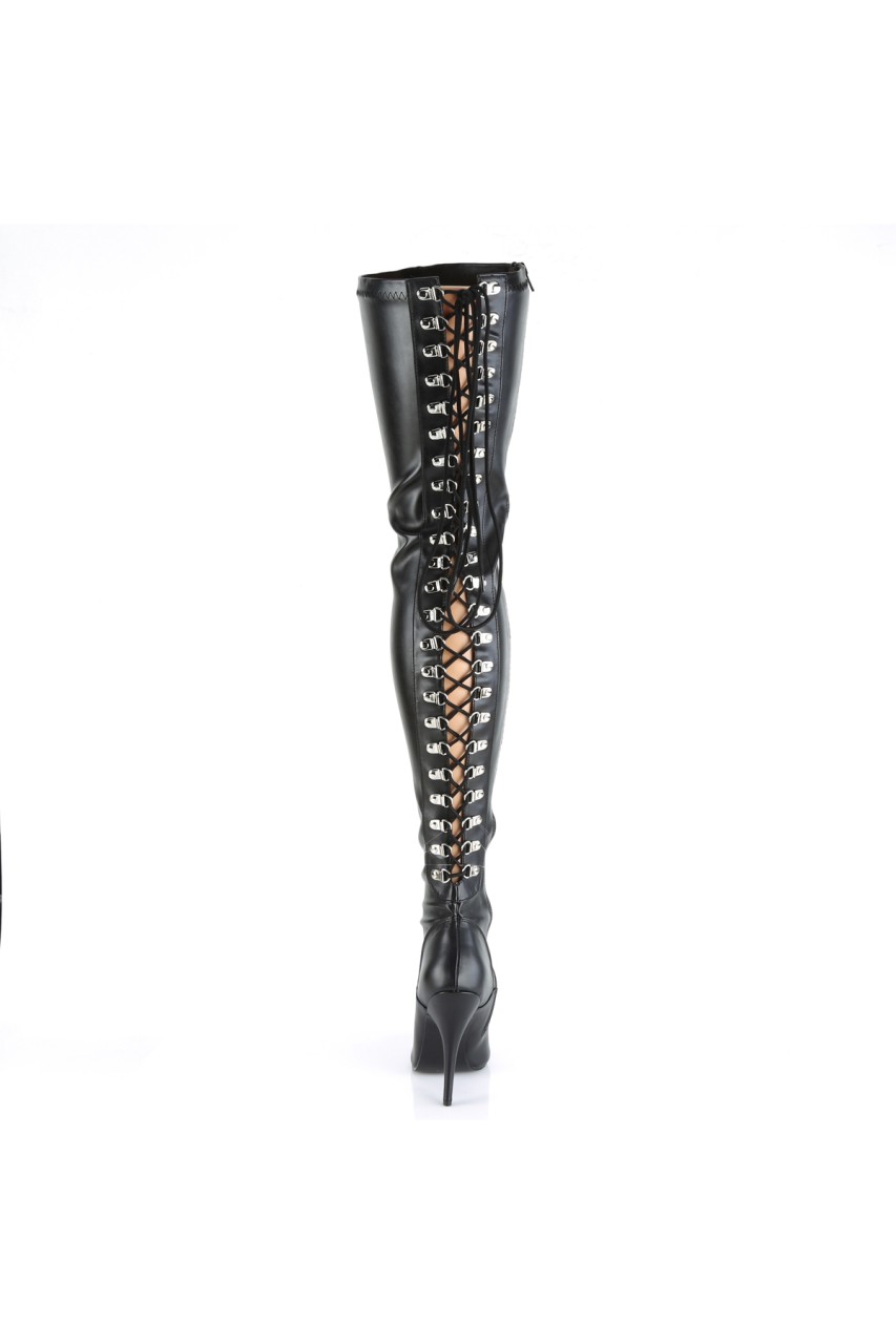 5″” (12.7cm) Heel Open Back D-Ring Stretch Thigh Boot, Full Inner Side Zip Closure