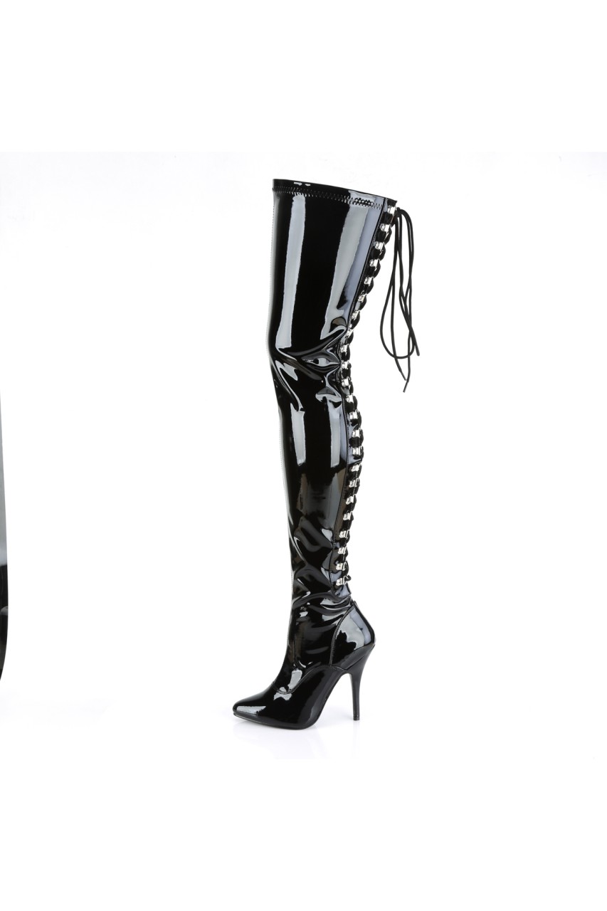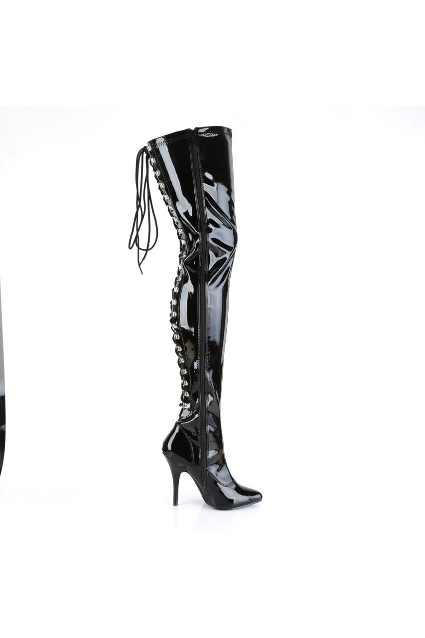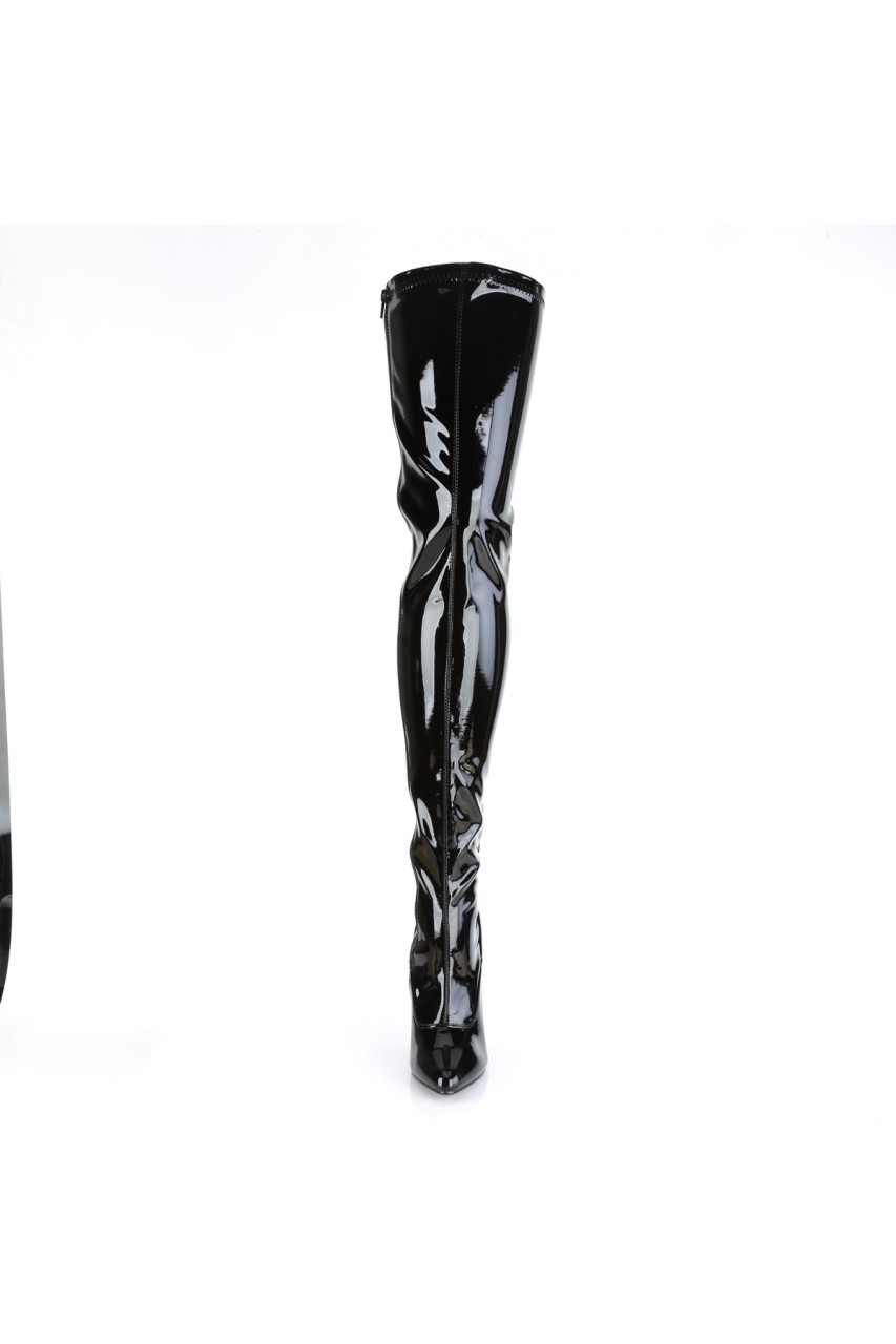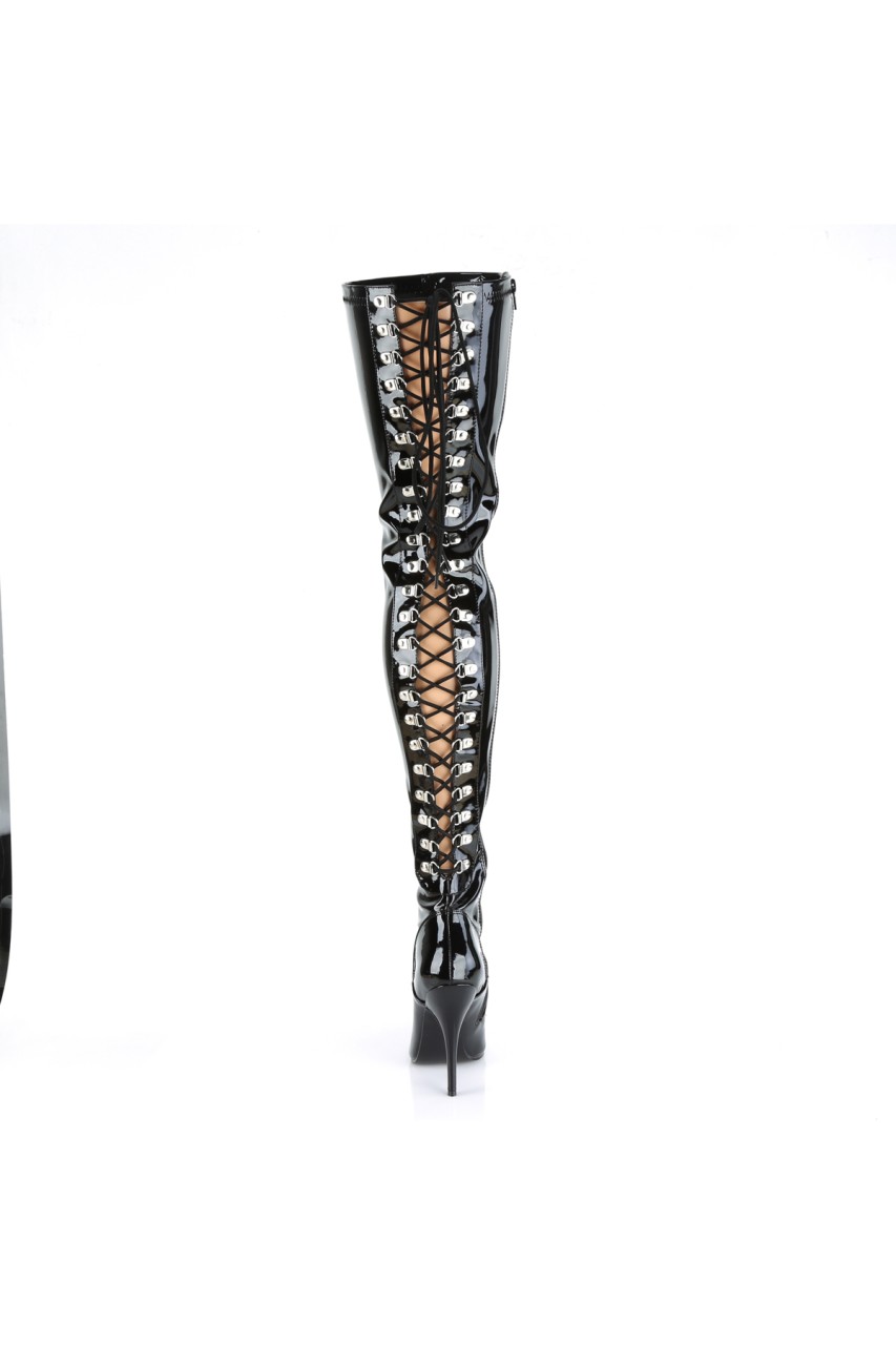 5″” (12.7cm) Heel Open Back D-Ring Stretch Thigh Boot, Full Inner Side Zip Closure